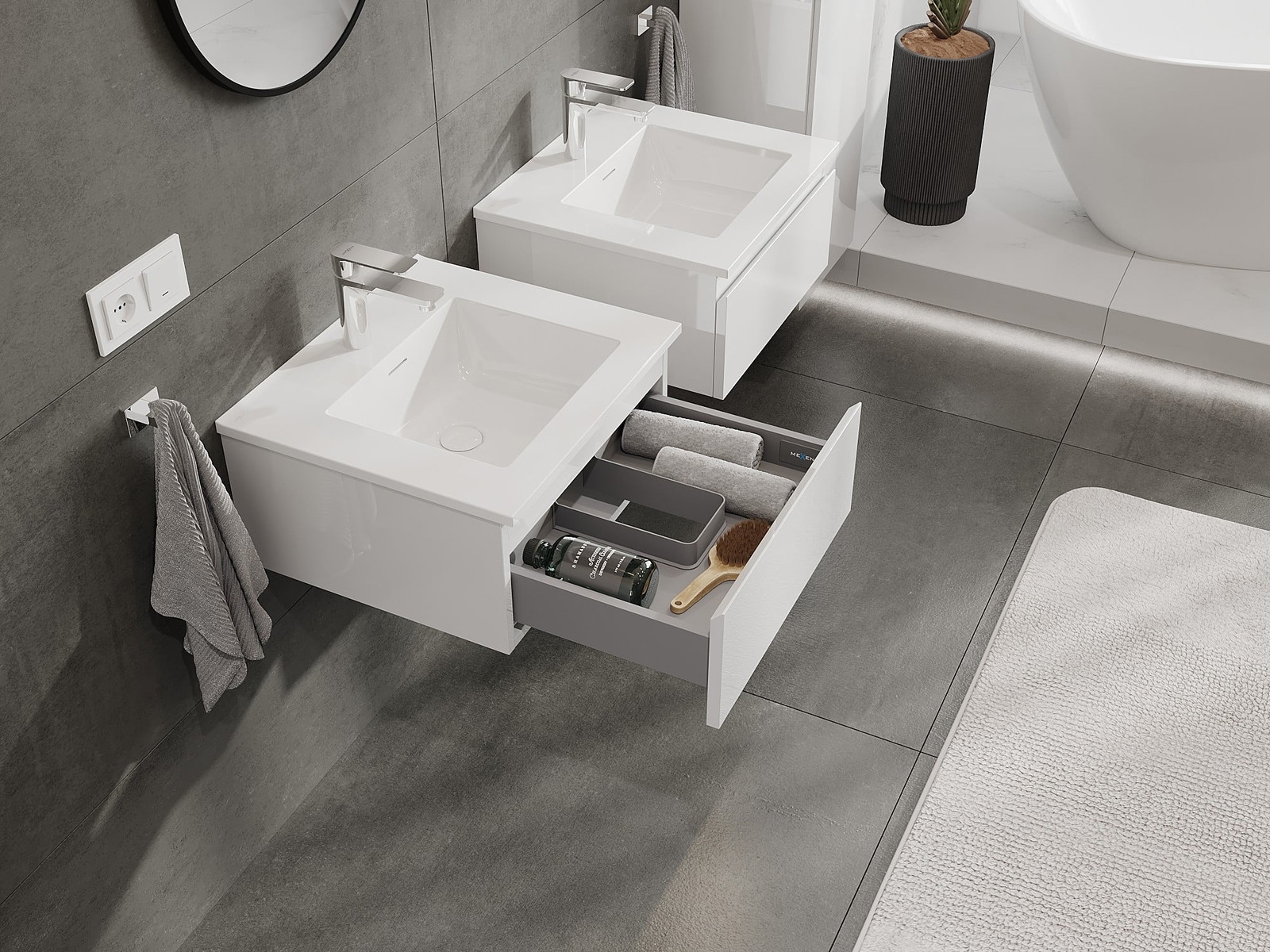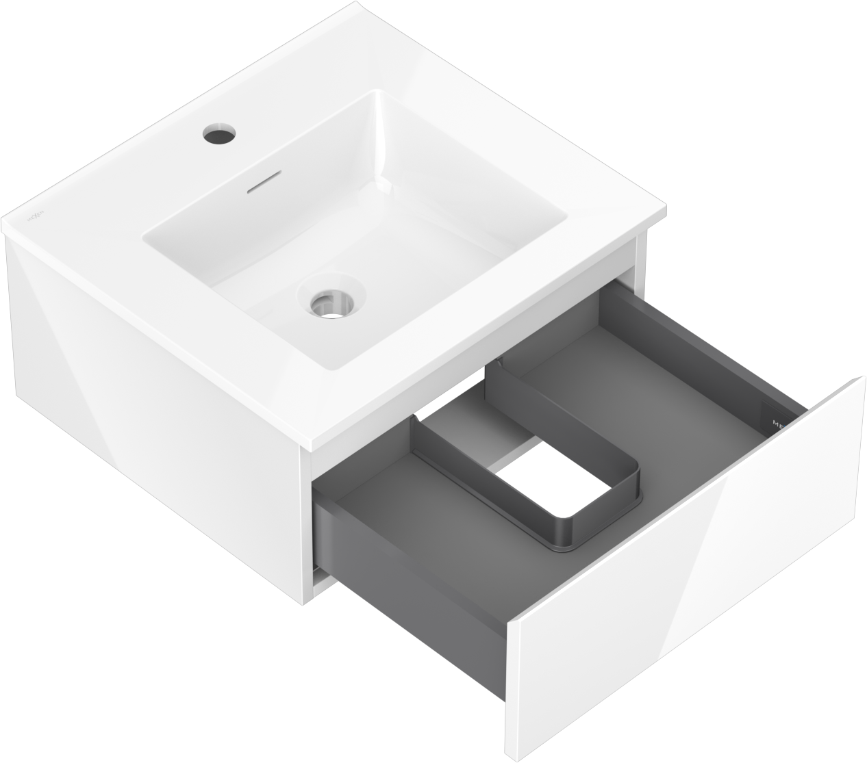 Mexen Orio ντουλάπι μπάνιου 50 cm με νιπτήρα Otis, 1 συρτάρι, λευκή γυαλιστερή