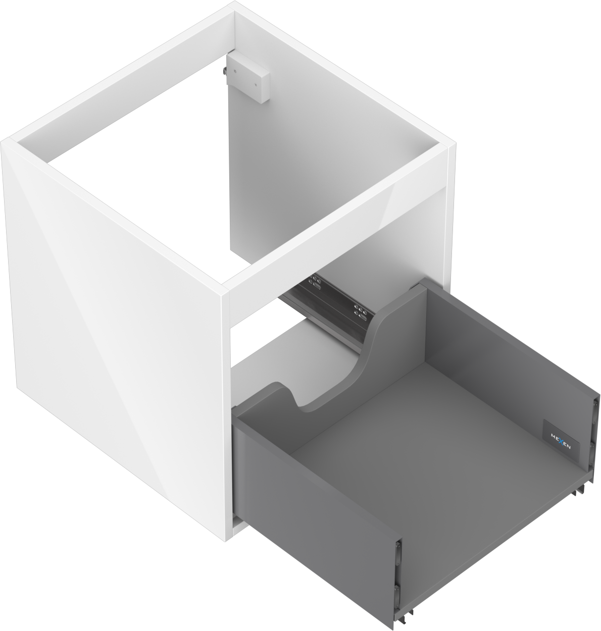 Η εγκοπή στο συρτάρι είναι σχεδιασμένη με τέτοιο τρόπο, ώστε να φιλοξενεί το σιφόνι, το οποίο είναι απαραίτητο στις εγκαταστάσεις νιπτήρων. Έτσι, το έπιπλο μπορεί να εγκατασταθεί πλήρως λειτουργικά, χωρίς την ανάγκη παραίτησης από χώρο στο συρτάρι υπέρ της εγκατάστασης.