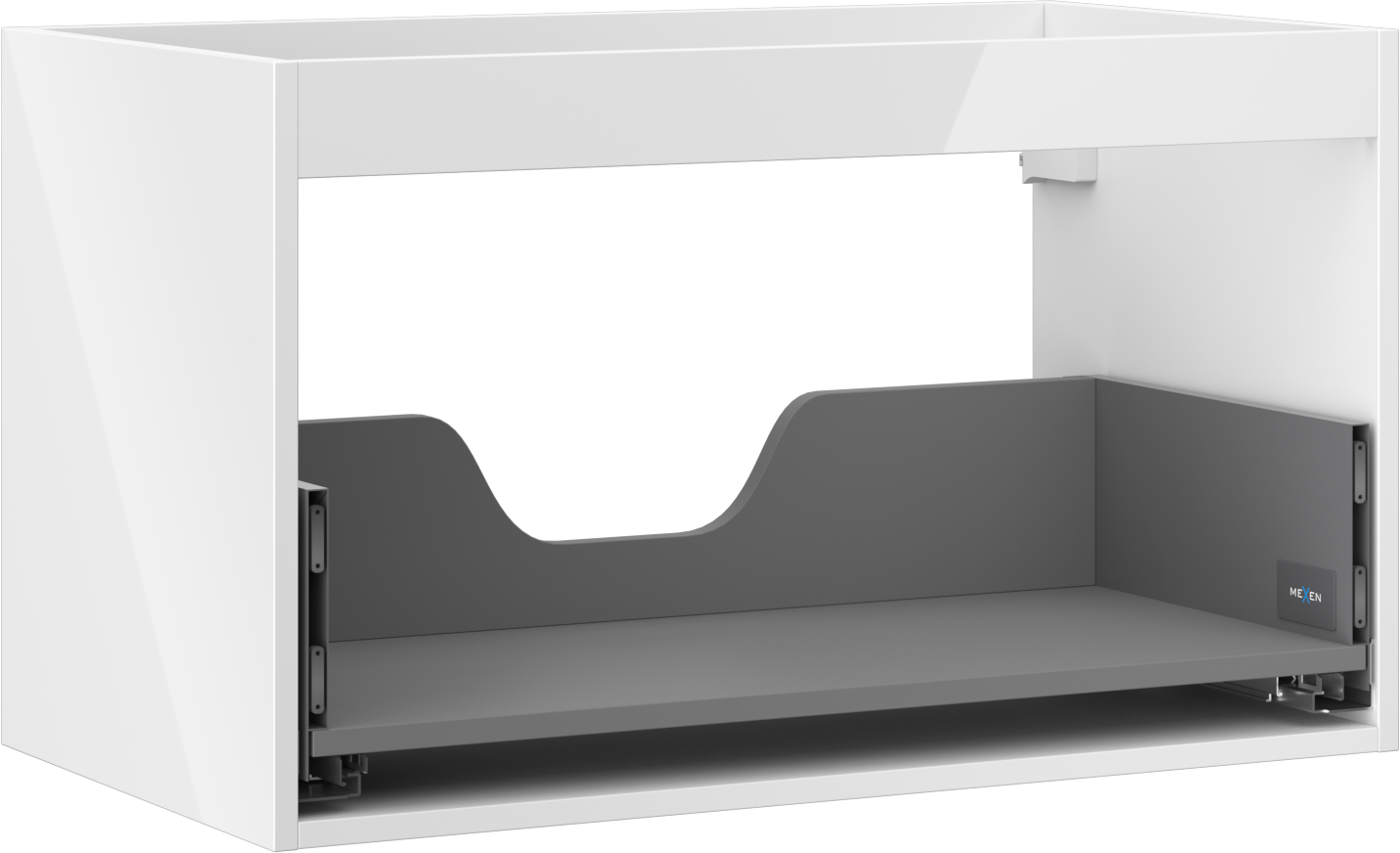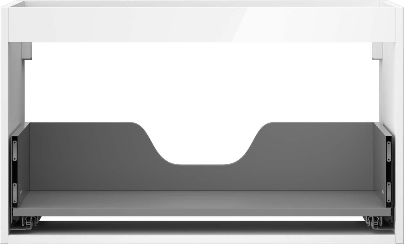Η εγκοπή στο συρτάρι είναι σχεδιασμένη με τέτοιο τρόπο, ώστε να φιλοξενεί το σιφόνι, το οποίο είναι απαραίτητο στις εγκαταστάσεις νιπτήρων. Έτσι, το έπιπλο μπορεί να εγκατασταθεί πλήρως λειτουργικά, χωρίς την ανάγκη παραίτησης από χώρο στο συρτάρι υπέρ της εγκατάστασης.
