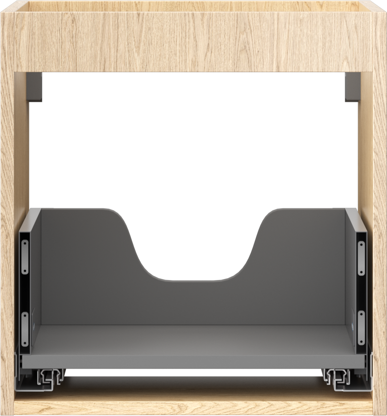 Η εγκοπή στο συρτάρι είναι σχεδιασμένη με τέτοιο τρόπο, ώστε να φιλοξενεί το σιφόνι, το οποίο είναι απαραίτητο στις εγκαταστάσεις νιπτήρων. Έτσι, το έπιπλο μπορεί να εγκατασταθεί πλήρως λειτουργικά, χωρίς την ανάγκη παραίτησης από χώρο στο συρτάρι υπέρ της εγκατάστασης.