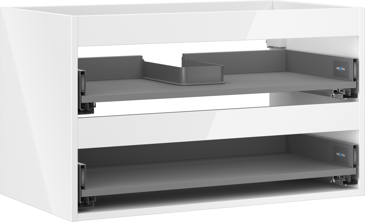 Η εγκοπή στο συρτάρι είναι σχεδιασμένη με τέτοιο τρόπο, ώστε να φιλοξενεί το σιφόνι, το οποίο είναι απαραίτητο στις εγκαταστάσεις νιπτήρων. Έτσι, το έπιπλο μπορεί να εγκατασταθεί πλήρως λειτουργικά, χωρίς την ανάγκη παραίτησης από χώρο στο συρτάρι υπέρ της εγκατάστασης.