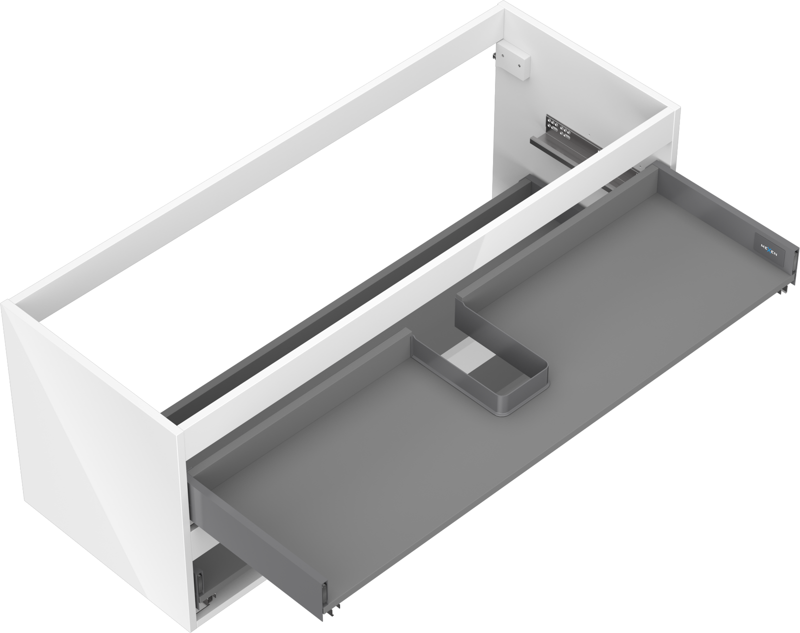 Η εγκοπή στο συρτάρι είναι σχεδιασμένη με τέτοιο τρόπο, ώστε να φιλοξενεί το σιφόνι, το οποίο είναι απαραίτητο στις εγκαταστάσεις νιπτήρων. Έτσι, το έπιπλο μπορεί να εγκατασταθεί πλήρως λειτουργικά, χωρίς την ανάγκη παραίτησης από χώρο στο συρτάρι υπέρ της εγκατάστασης.