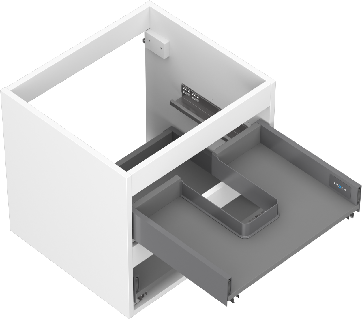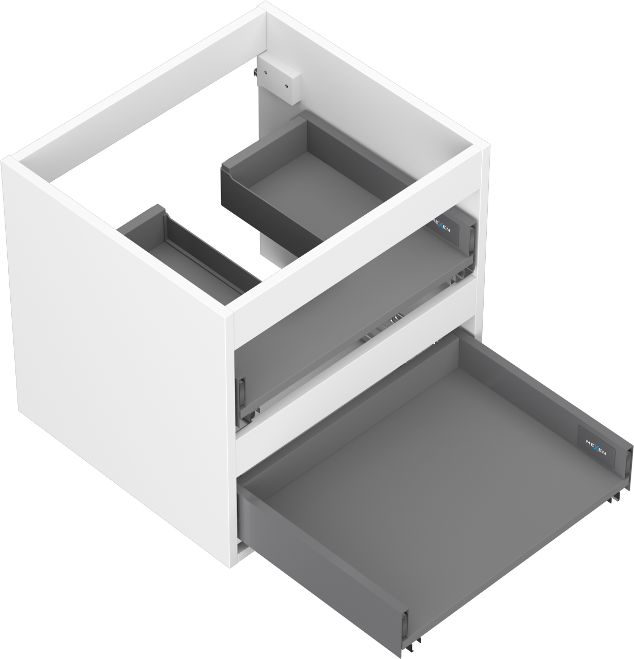 Η εγκοπή στο συρτάρι είναι σχεδιασμένη με τέτοιο τρόπο, ώστε να φιλοξενεί το σιφόνι, το οποίο είναι απαραίτητο στις εγκαταστάσεις νιπτήρων. Έτσι, το έπιπλο μπορεί να εγκατασταθεί πλήρως λειτουργικά, χωρίς την ανάγκη παραίτησης από χώρο στο συρτάρι υπέρ της εγκατάστασης.