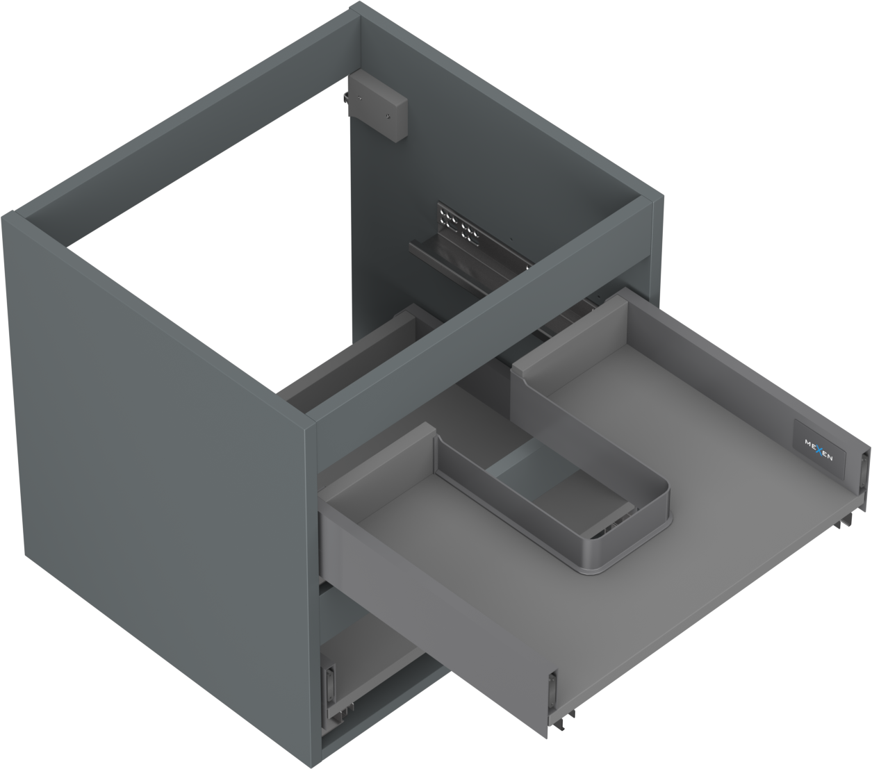 Η εγκοπή στο συρτάρι είναι σχεδιασμένη με τέτοιο τρόπο, ώστε να φιλοξενεί το σιφόνι, το οποίο είναι απαραίτητο στις εγκαταστάσεις νιπτήρων. Έτσι, το έπιπλο μπορεί να εγκατασταθεί πλήρως λειτουργικά, χωρίς την ανάγκη παραίτησης από χώρο στο συρτάρι υπέρ της εγκατάστασης.