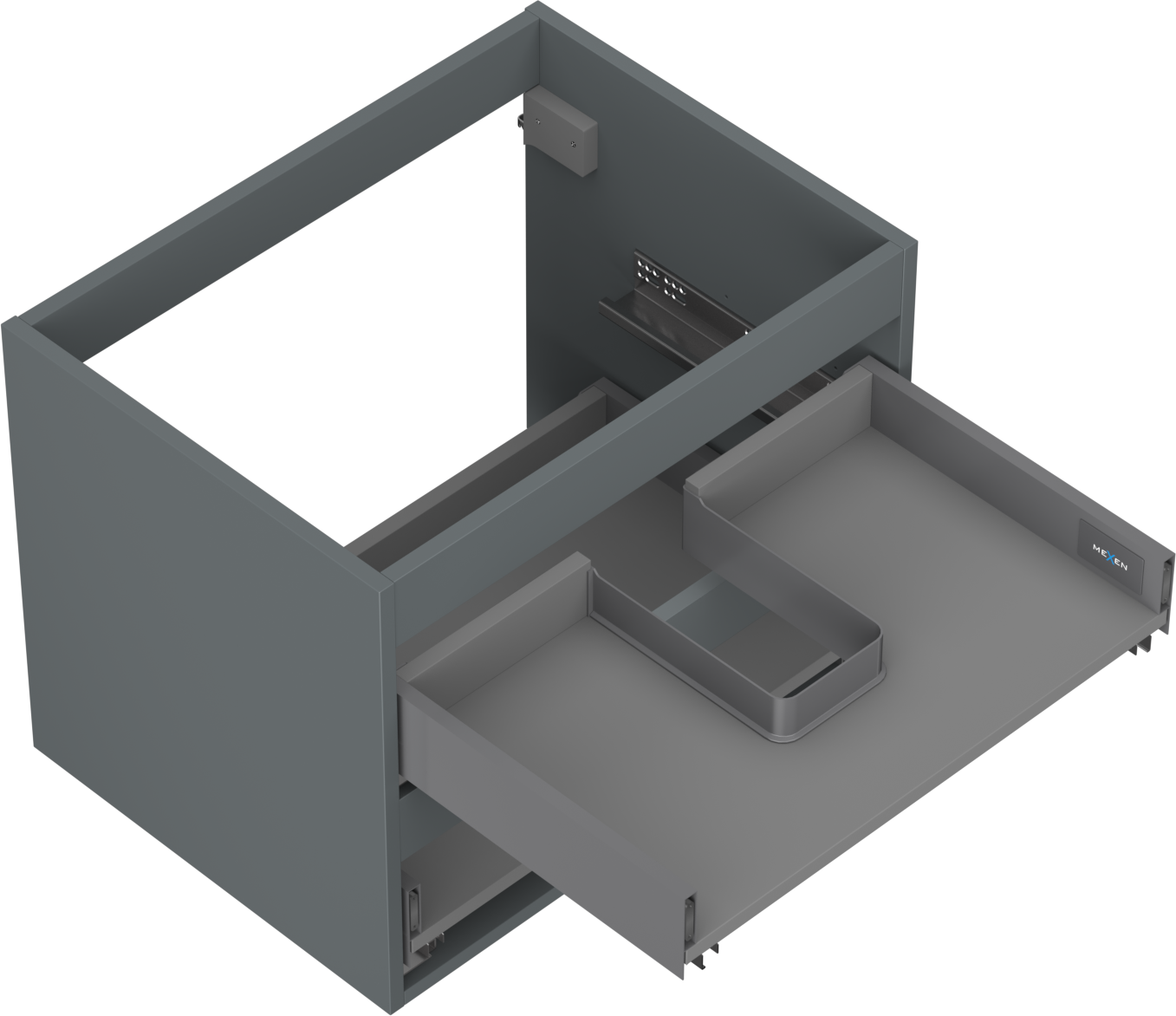 Η εγκοπή στο συρτάρι είναι σχεδιασμένη με τέτοιο τρόπο, ώστε να φιλοξενεί το σιφόνι, το οποίο είναι απαραίτητο στις εγκαταστάσεις νιπτήρων. Έτσι, το έπιπλο μπορεί να εγκατασταθεί πλήρως λειτουργικά, χωρίς την ανάγκη παραίτησης από χώρο στο συρτάρι υπέρ της εγκατάστασης.