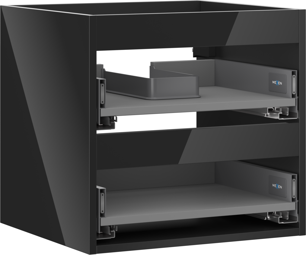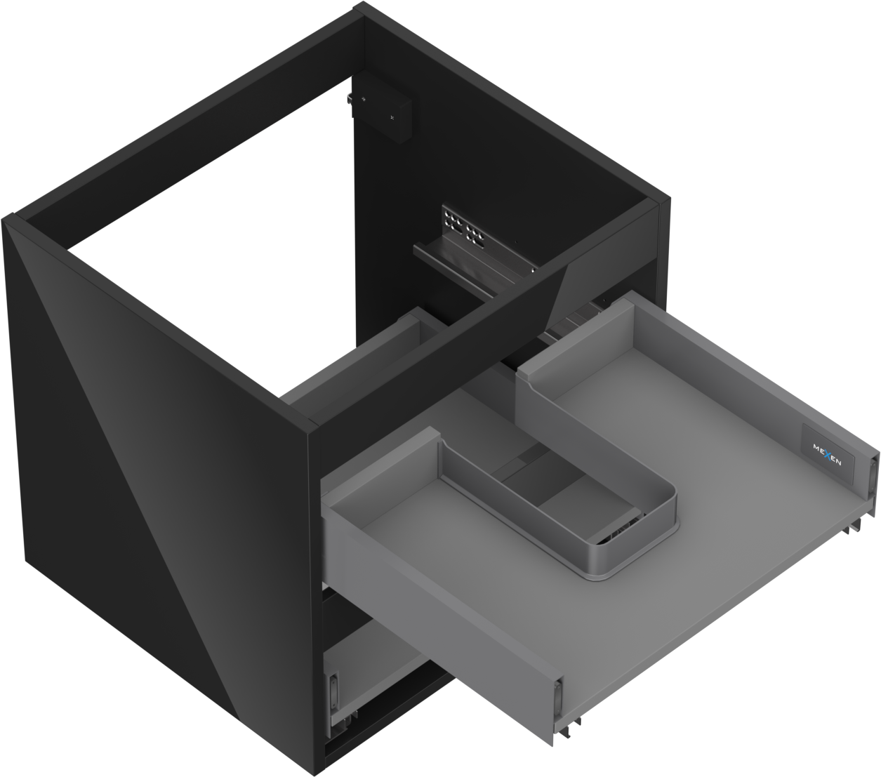 Η εγκοπή στο συρτάρι είναι σχεδιασμένη με τέτοιο τρόπο, ώστε να φιλοξενεί το σιφόνι, το οποίο είναι απαραίτητο στις εγκαταστάσεις νιπτήρων. Έτσι, το έπιπλο μπορεί να εγκατασταθεί πλήρως λειτουργικά, χωρίς την ανάγκη παραίτησης από χώρο στο συρτάρι υπέρ της εγκατάστασης.