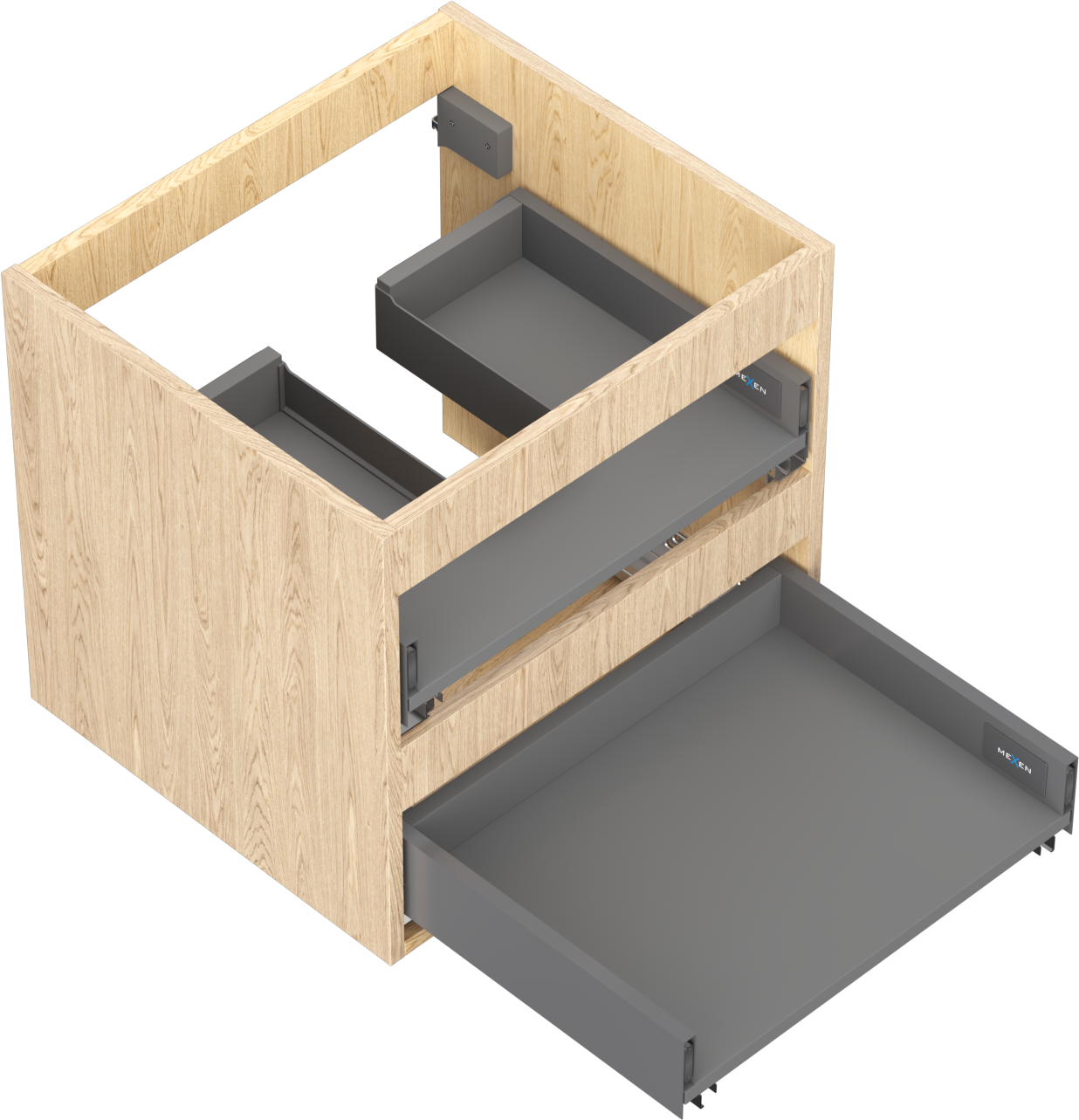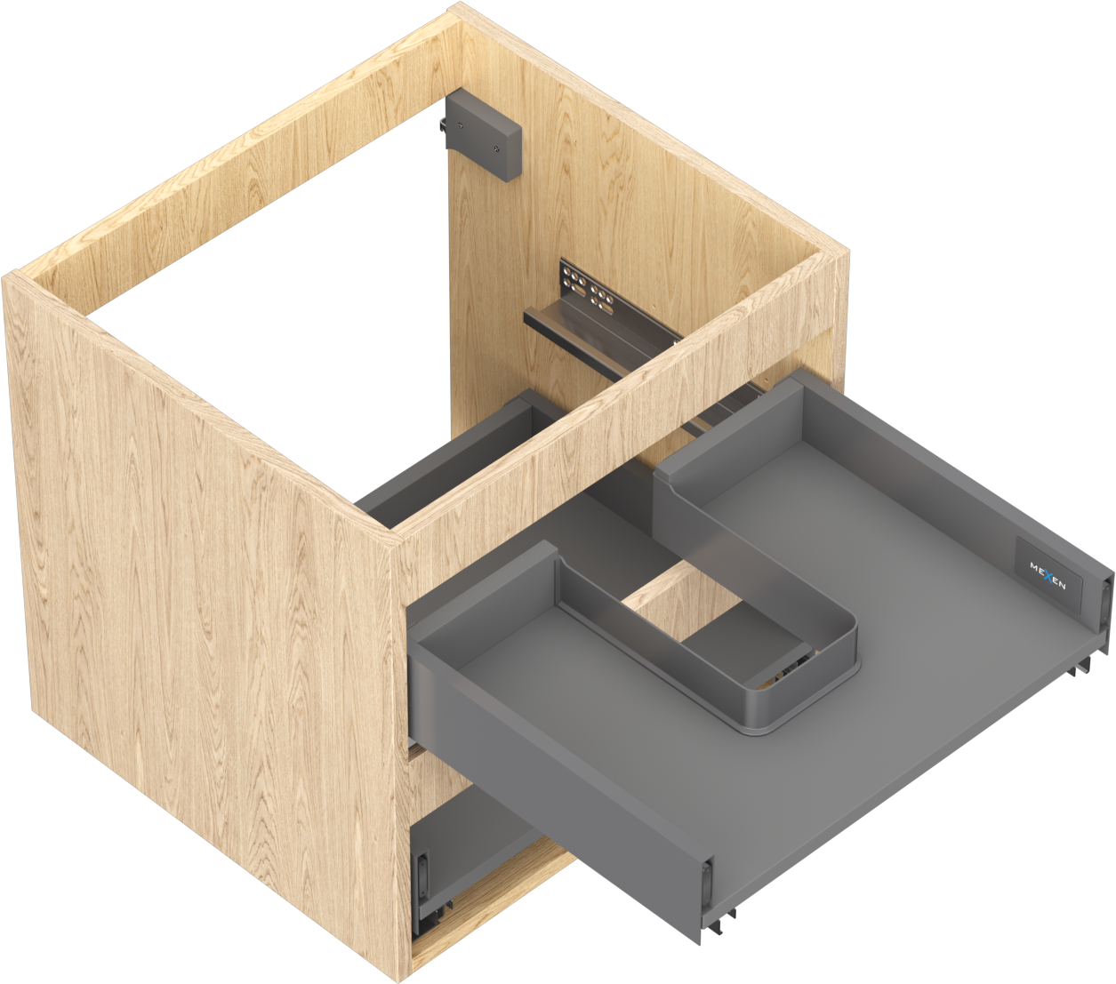 Η εγκοπή στο συρτάρι είναι σχεδιασμένη με τέτοιο τρόπο, ώστε να φιλοξενεί το σιφόνι, το οποίο είναι απαραίτητο στις εγκαταστάσεις νιπτήρων. Έτσι, το έπιπλο μπορεί να εγκατασταθεί πλήρως λειτουργικά, χωρίς την ανάγκη παραίτησης από χώρο στο συρτάρι υπέρ της εγκατάστασης.