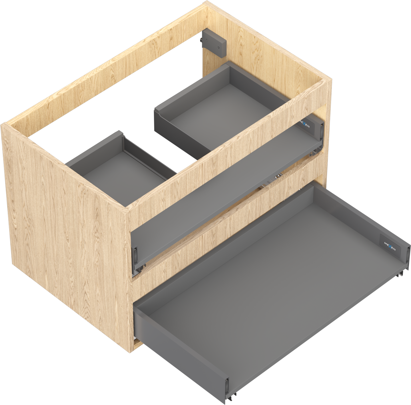 Η εγκοπή στο συρτάρι είναι σχεδιασμένη με τέτοιο τρόπο, ώστε να φιλοξενεί το σιφόνι, το οποίο είναι απαραίτητο στις εγκαταστάσεις νιπτήρων. Έτσι, το έπιπλο μπορεί να εγκατασταθεί πλήρως λειτουργικά, χωρίς την ανάγκη παραίτησης από χώρο στο συρτάρι υπέρ της εγκατάστασης.
