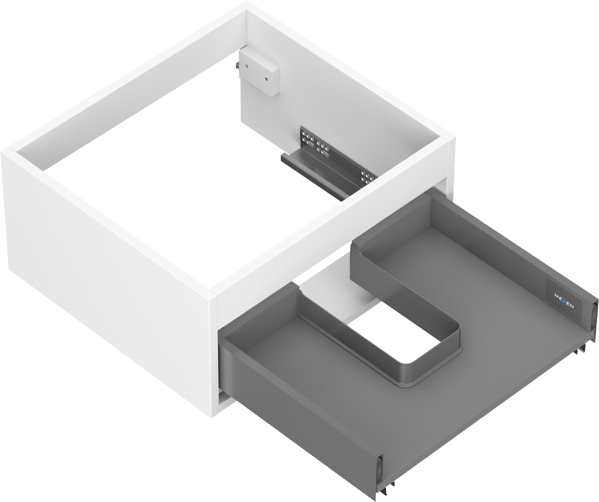 Η εγκοπή στο συρτάρι είναι σχεδιασμένη με τέτοιο τρόπο, ώστε να φιλοξενεί το σιφόνι, το οποίο είναι απαραίτητο στις εγκαταστάσεις νιπτήρων. Έτσι, το έπιπλο μπορεί να εγκατασταθεί πλήρως λειτουργικά, χωρίς την ανάγκη παραίτησης από χώρο στο συρτάρι υπέρ της εγκατάστασης.
