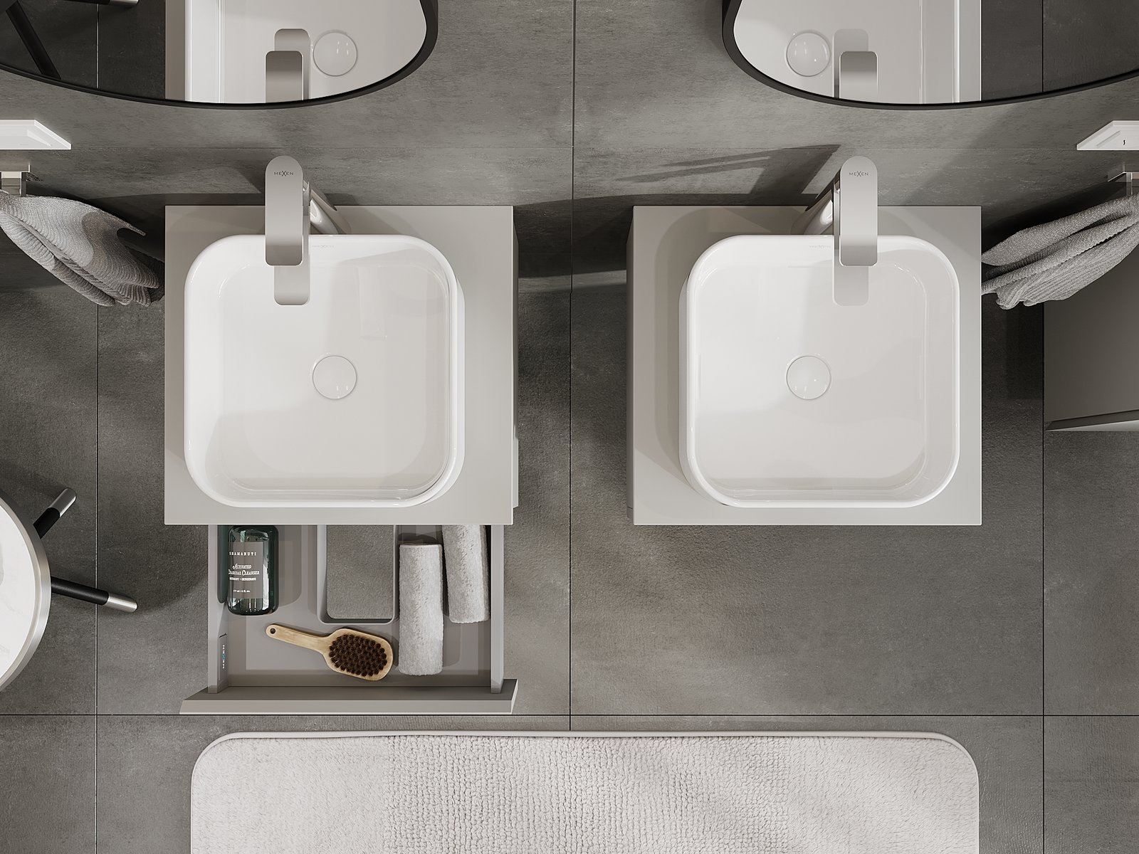Τα αρθρωτά έπιπλα μπάνιου μας μπορούν να συνδυαστούν μεταξύ τους σε διάφορες χρωματικές διαμορφώσεις, επιτρέποντας πλήρη εξατομίκευση. Μπορείτε να επιλέξετε τόσο την εμφάνιση όσο και τις λειτουργίες των επιμέρους στοιχείων, ώστε να προσαρμόσετε τα έπιπλα στις δικές σας στιλιστικές και λειτουργικές προτιμήσεις.