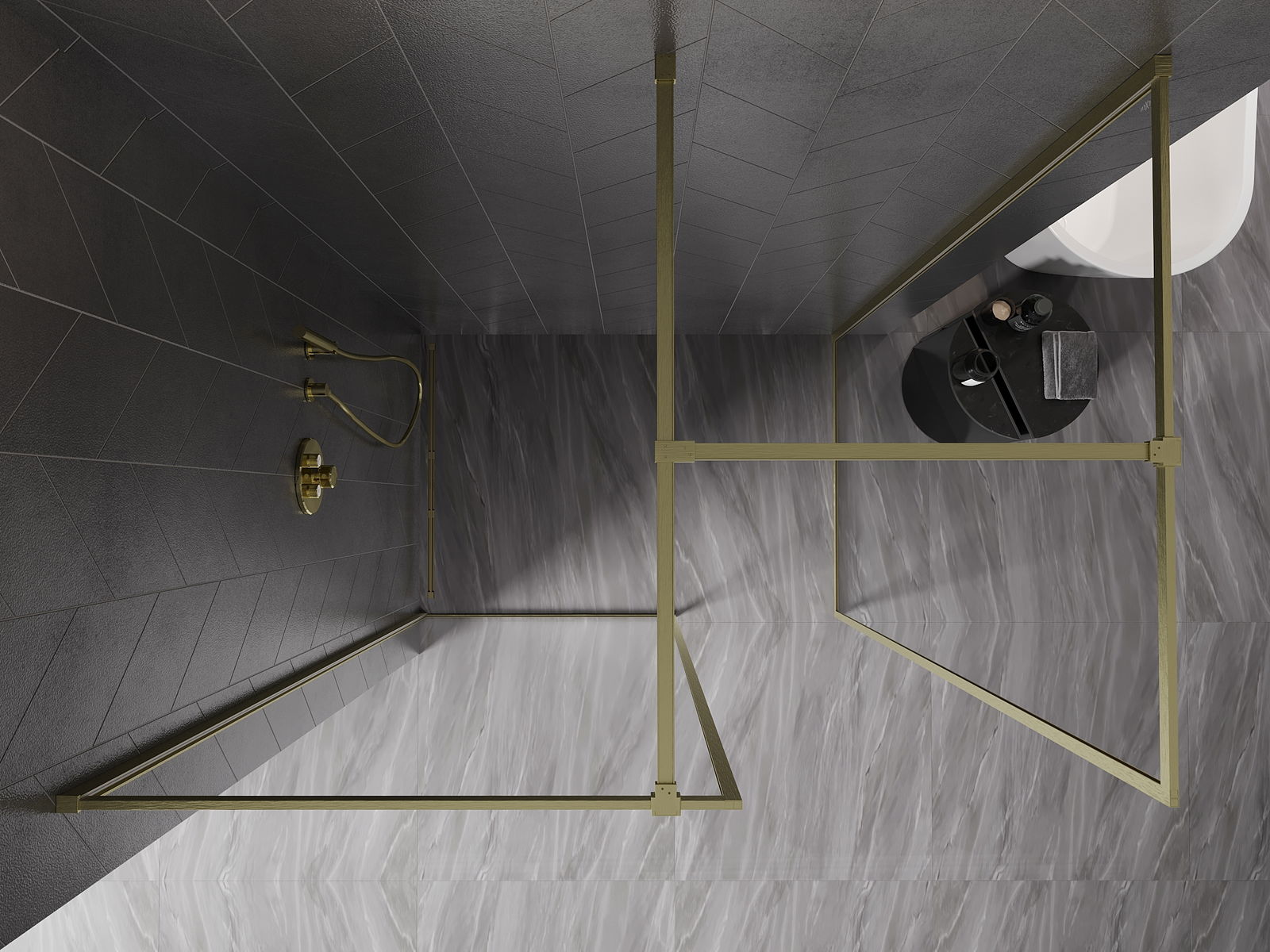 Mexen Kioto-F Πάνελ ντους Walk-in με πλαίσιο 125 x 120 cm, διαφανές 8 mm, χρυσό