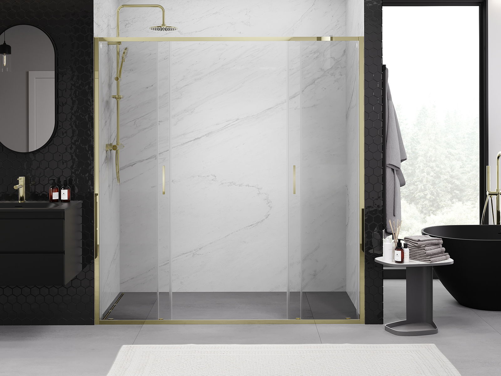 Mexen Exo διπλές συρόμενες πόρτες ντους 170 εκ., διαφανείς, χρυσές