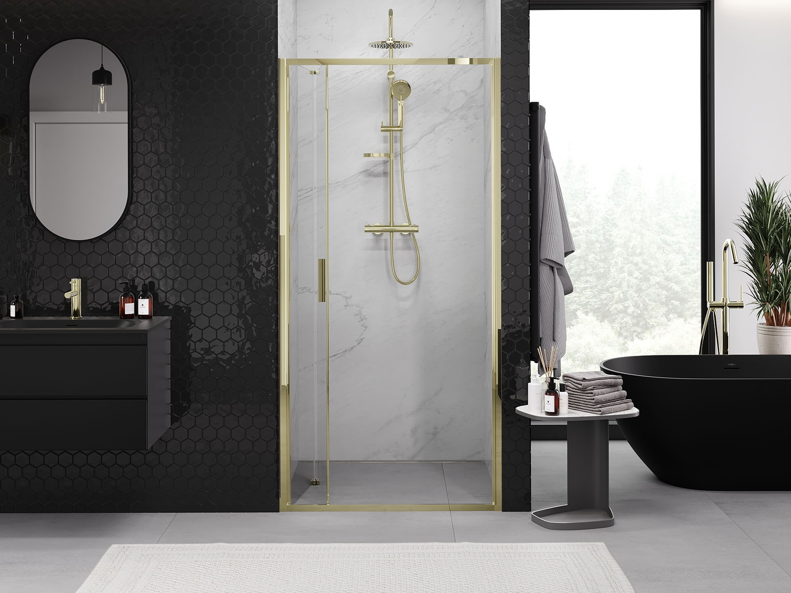 Η δυνατότητα πτύχωσης των πορτών, τόσο προς τα έξω όσο και προς τα μέσα, επιτρέπει την απόκτηση περισσότερου χώρου όταν δεν χρησιμοποιείται το ντους. Αυτή είναι μια ιδανική λύση για μικρότερα μπάνια, αξιοποιώντας στο μέγιστο το διαθέσιμο χώρο.