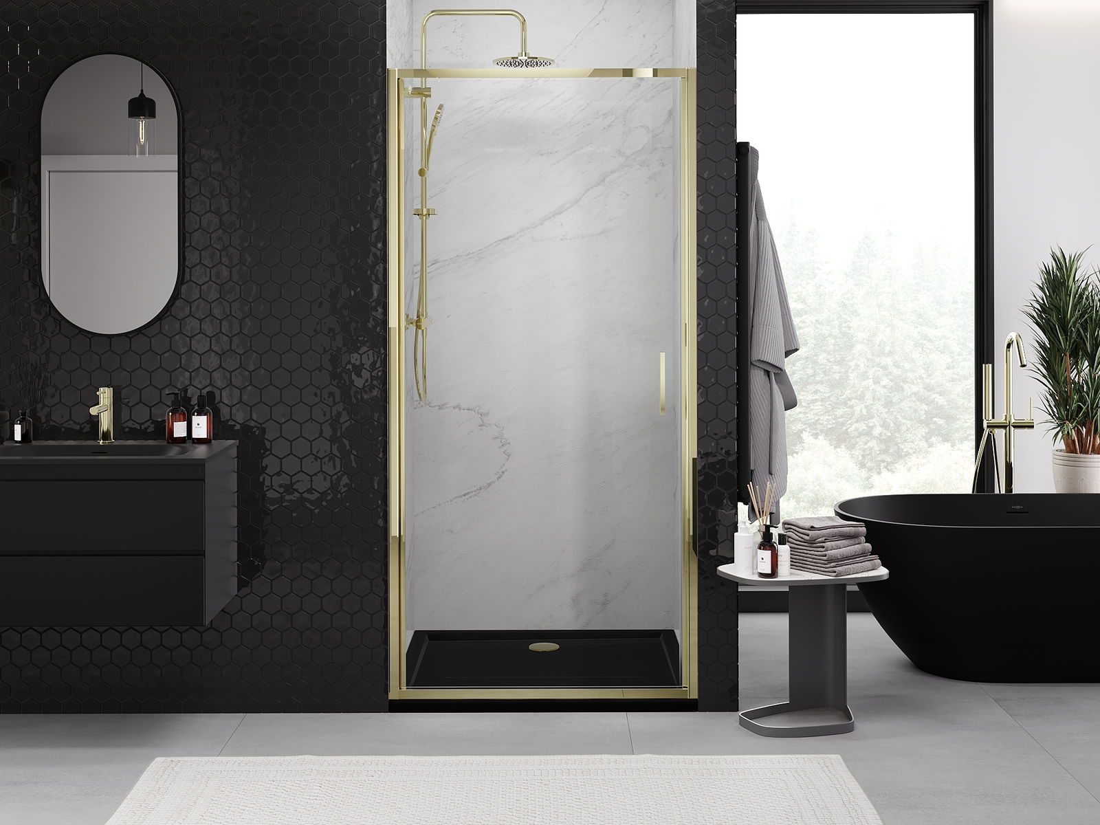 Η πρακτική και άνετη λαβή κατασκευάζεται από ανθεκτικό και αντοχής μέταλλο. Ο μοντέρνος σχεδιασμός σε συνδυασμό με το φινίρισμα που ταιριάζει με το χρώμα των προφίλ προσδίδει στο σύνολο μια σύγχρονη και κομψή εμφάνιση, τονίζοντας την αισθητική κάθε μπάνιου.