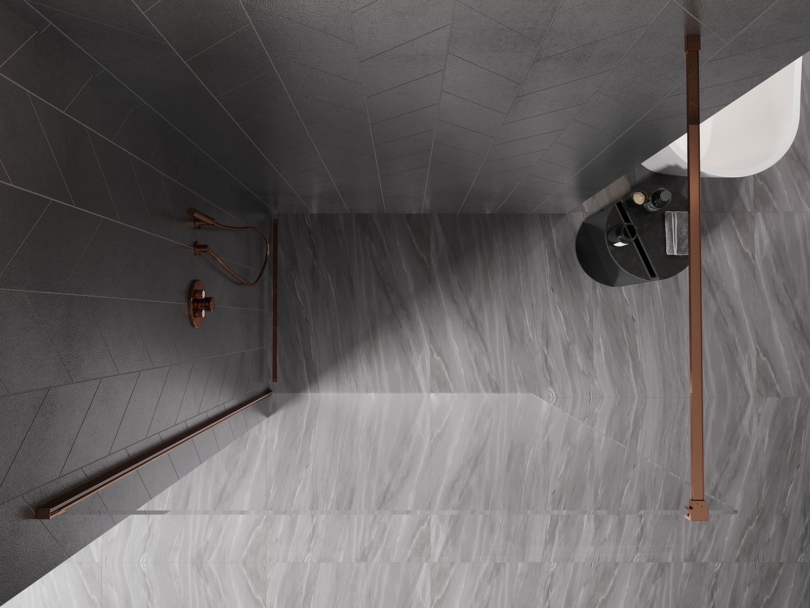 Mexen Kioto-X πλευρικό πάνελ ντους Walk-in 110 x 200 cm, διαφανές 10 mm, ροζ χρυσό