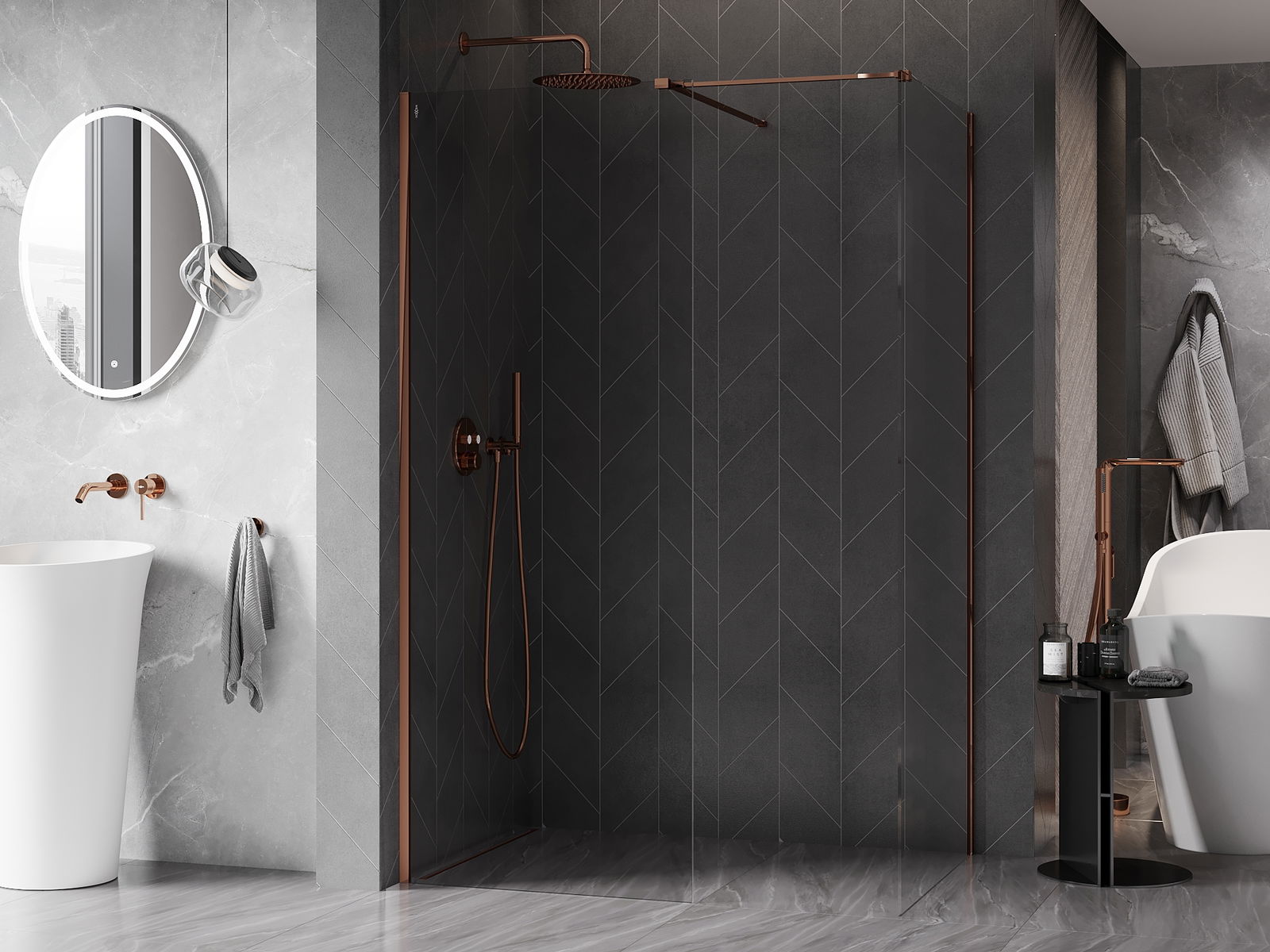 Χάρη στη χρήση ενός καθολικού συστήματος στήριξης, οι πόρτες ντους μπορούν να τοποθετηθούν είτε από τη δεξιά είτε από την αριστερή πλευρά, ανάλογα με τις ανάγκες. Έτσι μπορείτε να σχεδιάσετε με ευκολία ένα ντους προσαρμοσμένο στον χώρο του μπάνιου.