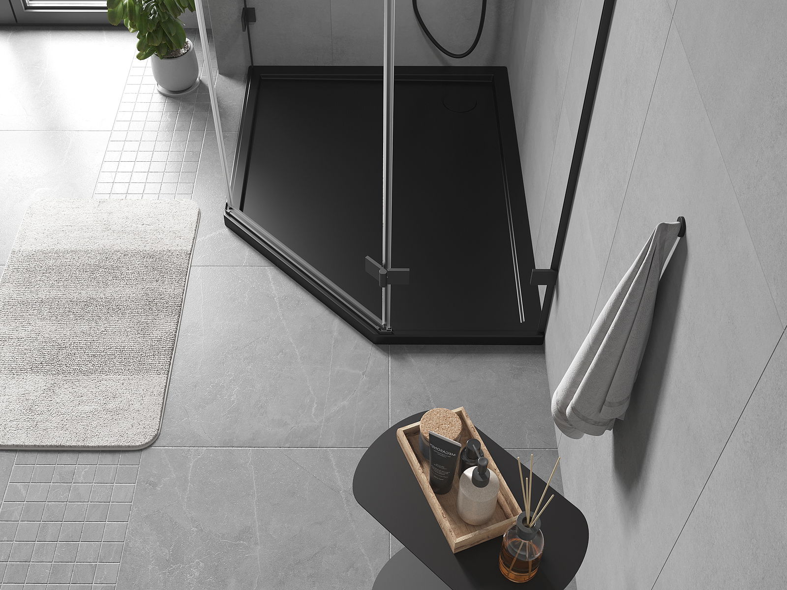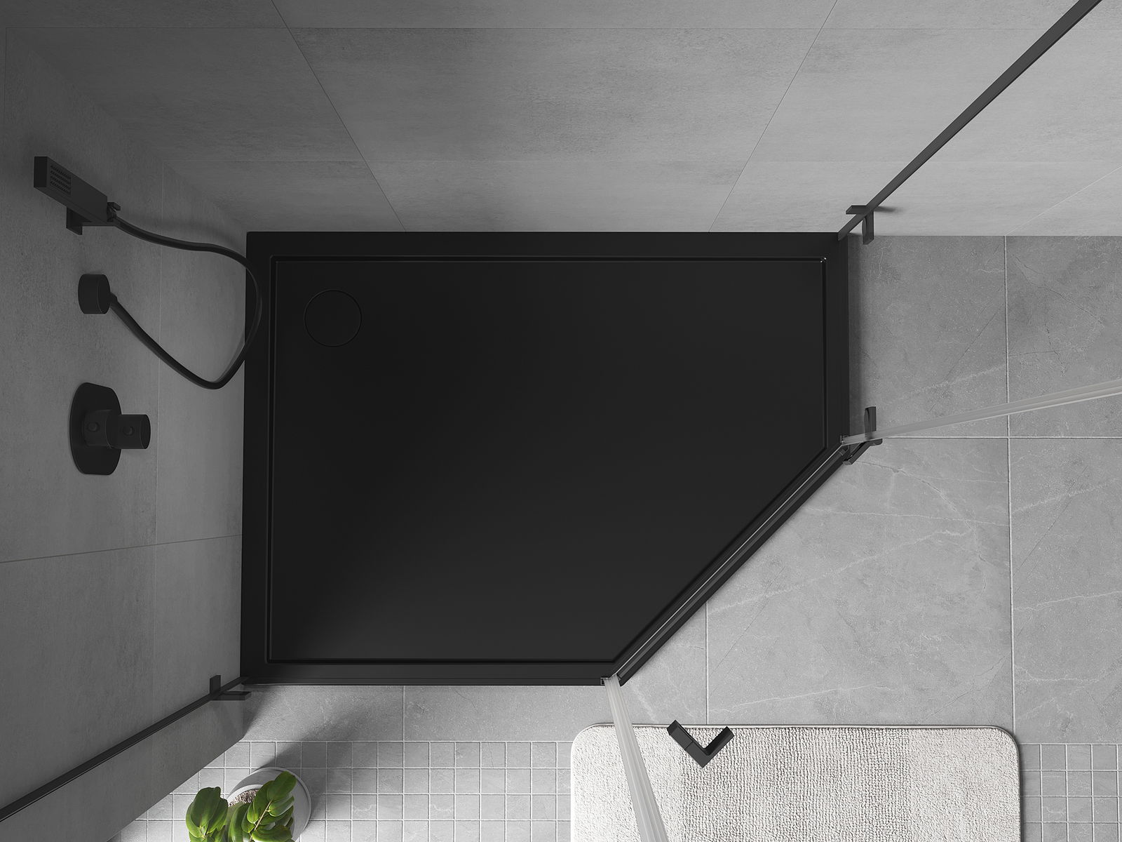 Mexen Flow λεπτός πεντάγωνος ντους αριστερό 100 x 80 cm, μαύρο ματ - 46P708010L
