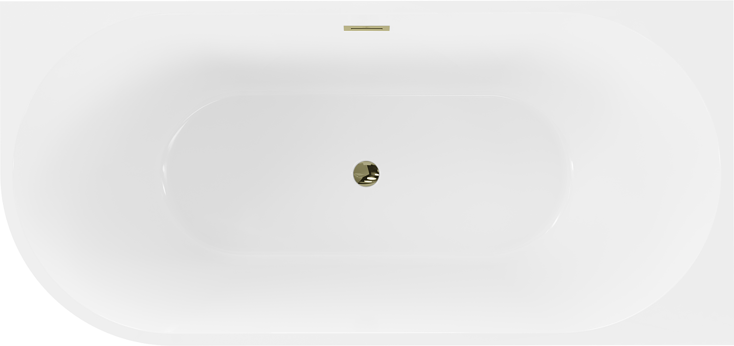 Mexen Mia ελεύθερη γωνιακή μπανιέρα δεξιά 140 x 75 cm, λευκή, υπερχείλιση χρυσή