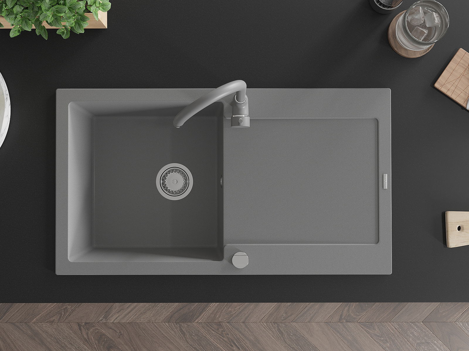 Ο νεροχύτης κατασκευάστηκε από υψηλής ποιότητας γρανίτη. Αποτελεί μια κομψή, και κυρίως πρακτική προσθήκη για κάθε κουζίνα, ανεξάρτητα από το στυλ της. Η υψηλή ποιότητα και η αντοχή του γρανίτη εξασφαλίζουν πολυετή χρήση.