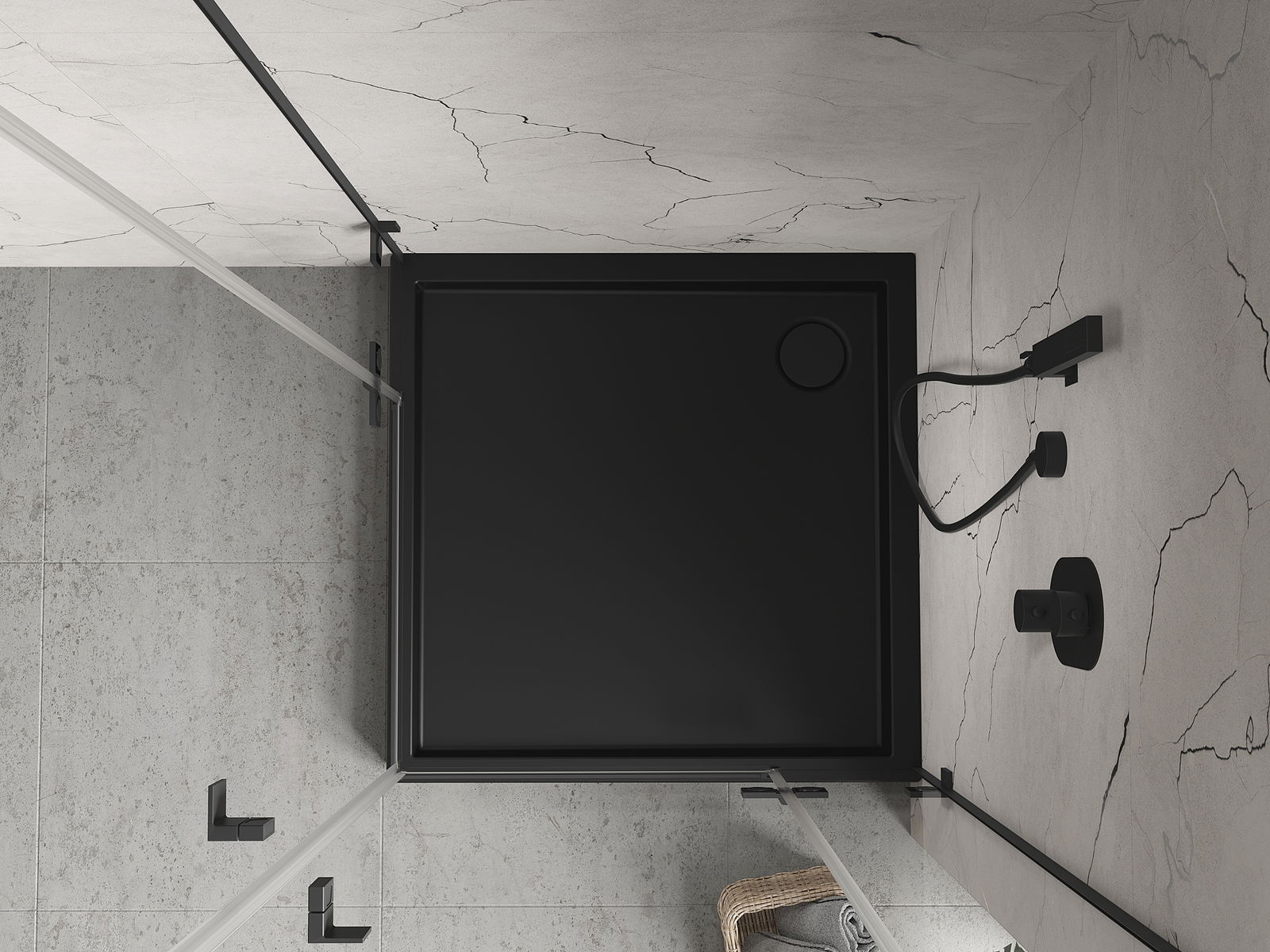 Mexen Flow+ τετράγωνη ντουζιέρα 90 x 90 cm, μαύρο ματ - 46S709090H