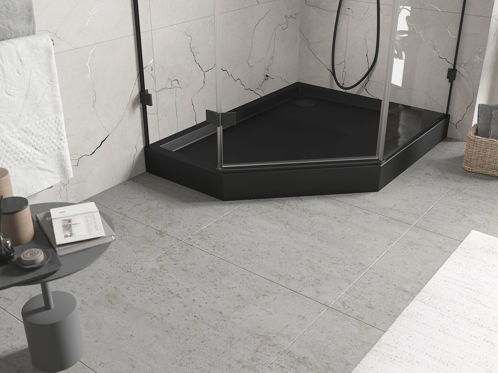 Mexen Flow+ πενταγωνική δεξιά ντουζιέρα 100 x 80 cm, μαύρο ματ - 46P708010RH