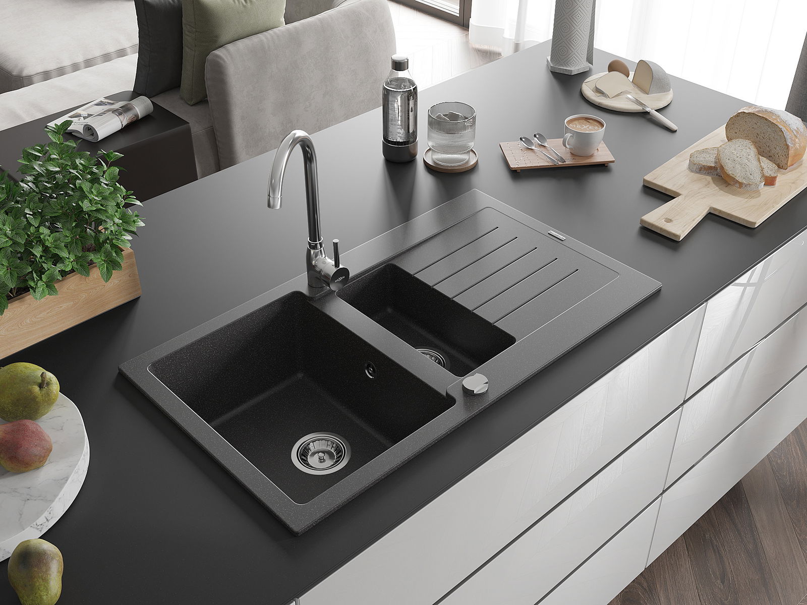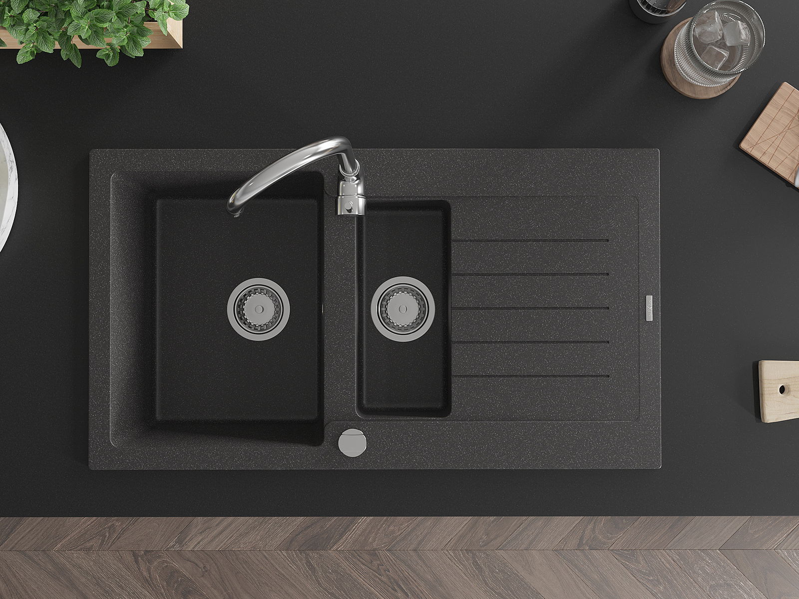 Mexen Matias νεροχύτης γρανίτης 1,5 θαλάμων με αποστραγγιστικό και μπαταρία