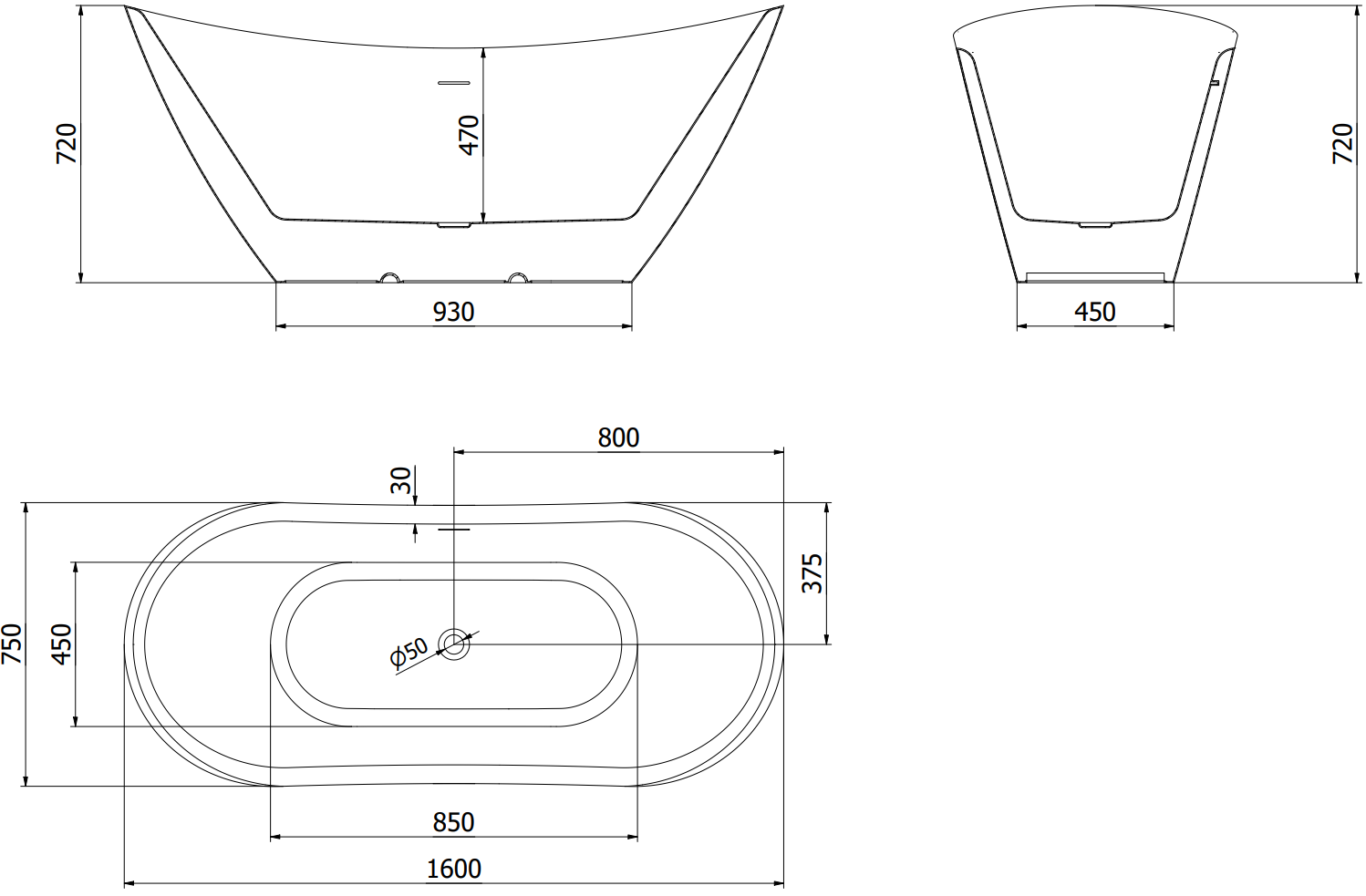 Mexen Lotos μπανιέρα ελεύθερης τοποθέτησης 160 x 75 cm, λευκή, χρώμιο