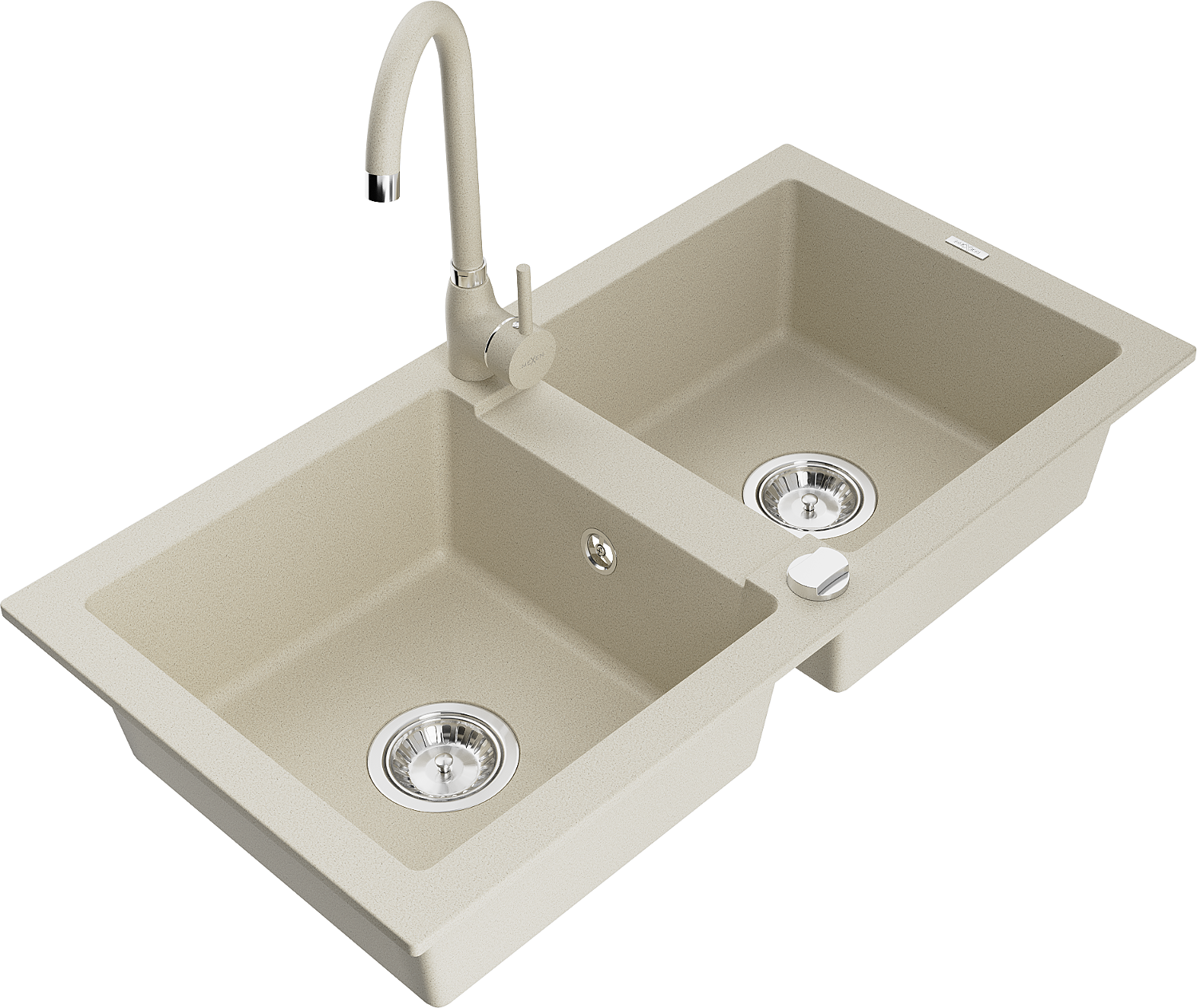 Mexen Mario νεροχύτης γρανίτης 2 θαλαμών με μπαταρία κουζίνας Telma, μπεζ