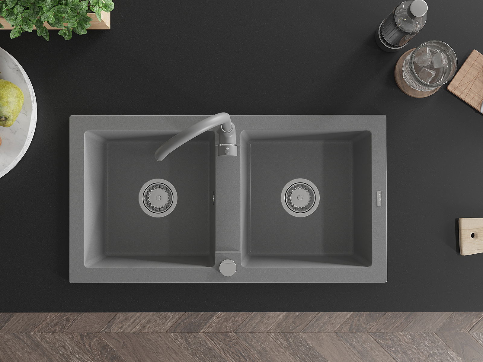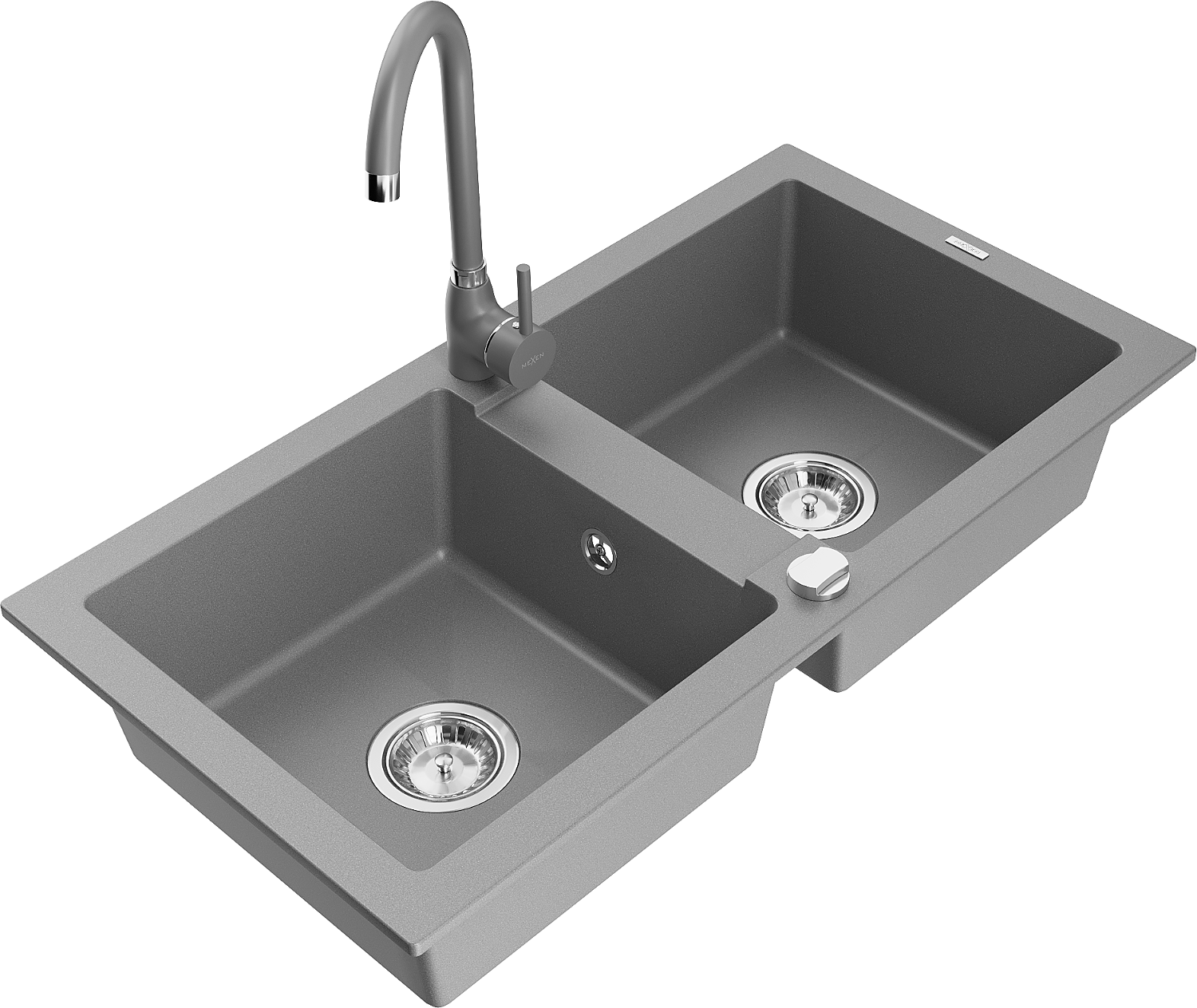 Mexen Mario νεροχύτης γρανίτης 2-θαλάμων με μπαταρία κουζίνας Telma, γκρι