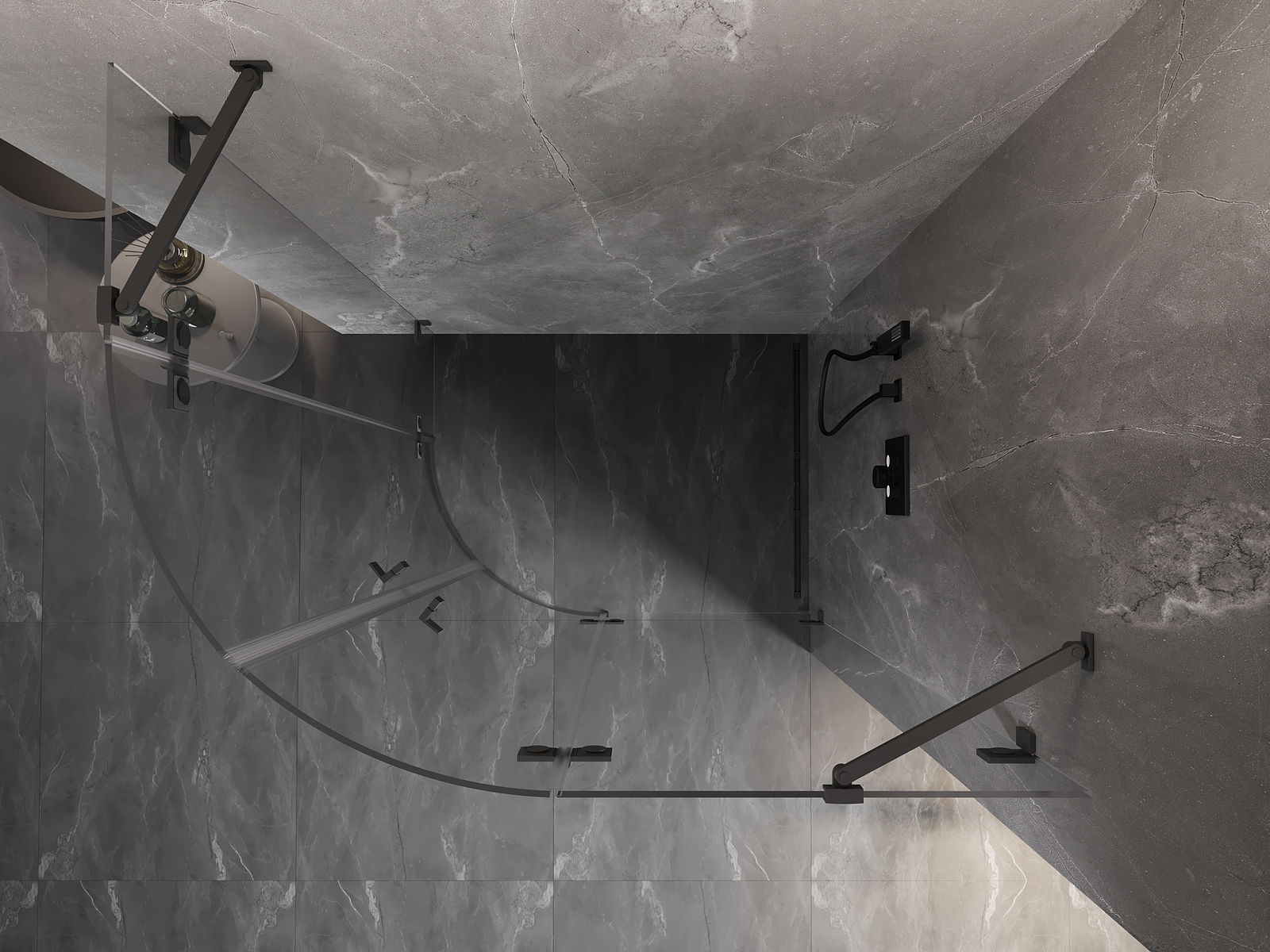 Οι σφιγκτήρες και οι μεντεσέδες είναι κατασκευασμένοι από πολύ ανθεκτικό ορείχαλκο και επιπλέον δημιουργούν μια ευθυγραμμισμένη επιφάνεια γυαλιού. Είναι μια εξαιρετική επιλογή που συνδυάζει κομψότητα, ανθεκτικότητα και σύγχρονο σχεδιασμό. Χάρη σε αυτές τις λύσεις, η ντουζιέρα κερδίζει σε αισθητική και ταυτόχρονα διευκολύνουν τη διατήρηση της καθαριότητας.