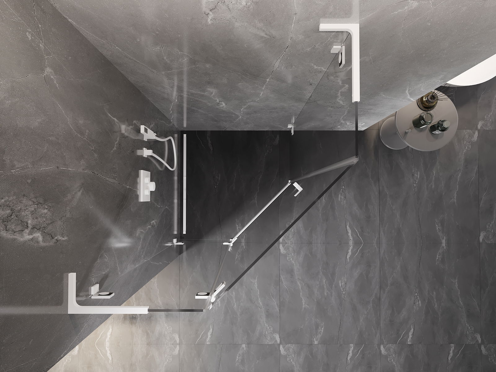 Οι σφιγκτήρες και οι μεντεσέδες είναι κατασκευασμένοι από πολύ ανθεκτικό ορείχαλκο και επιπλέον δημιουργούν μια ευθυγραμμισμένη επιφάνεια γυαλιού. Είναι μια εξαιρετική επιλογή που συνδυάζει κομψότητα, ανθεκτικότητα και σύγχρονο σχεδιασμό. Χάρη σε αυτές τις λύσεις, η ντουζιέρα κερδίζει σε αισθητική και ταυτόχρονα διευκολύνουν τη διατήρηση της καθαριότητας.