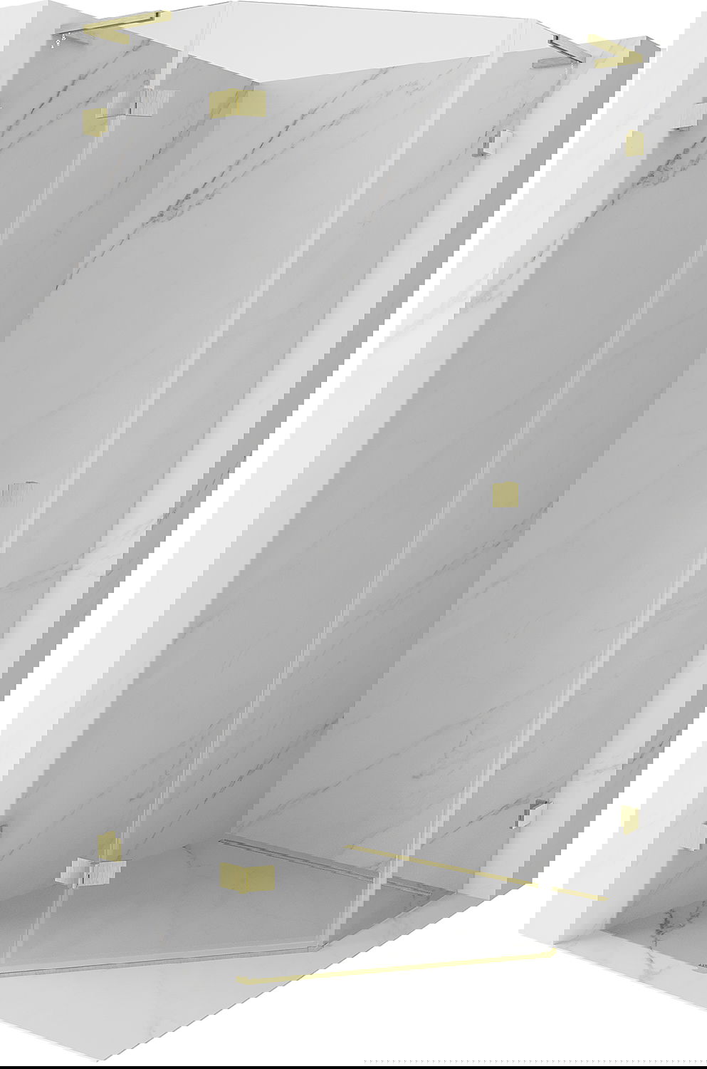 Οι σφιγκτήρες και οι μεντεσέδες είναι κατασκευασμένοι από πολύ ανθεκτικό ορείχαλκο και επιπλέον δημιουργούν μια ευθυγραμμισμένη επιφάνεια γυαλιού. Είναι μια εξαιρετική επιλογή που συνδυάζει κομψότητα, ανθεκτικότητα και σύγχρονο σχεδιασμό. Χάρη σε αυτές τις λύσεις, η ντουζιέρα κερδίζει σε αισθητική και ταυτόχρονα διευκολύνουν τη διατήρηση της καθαριότητας.