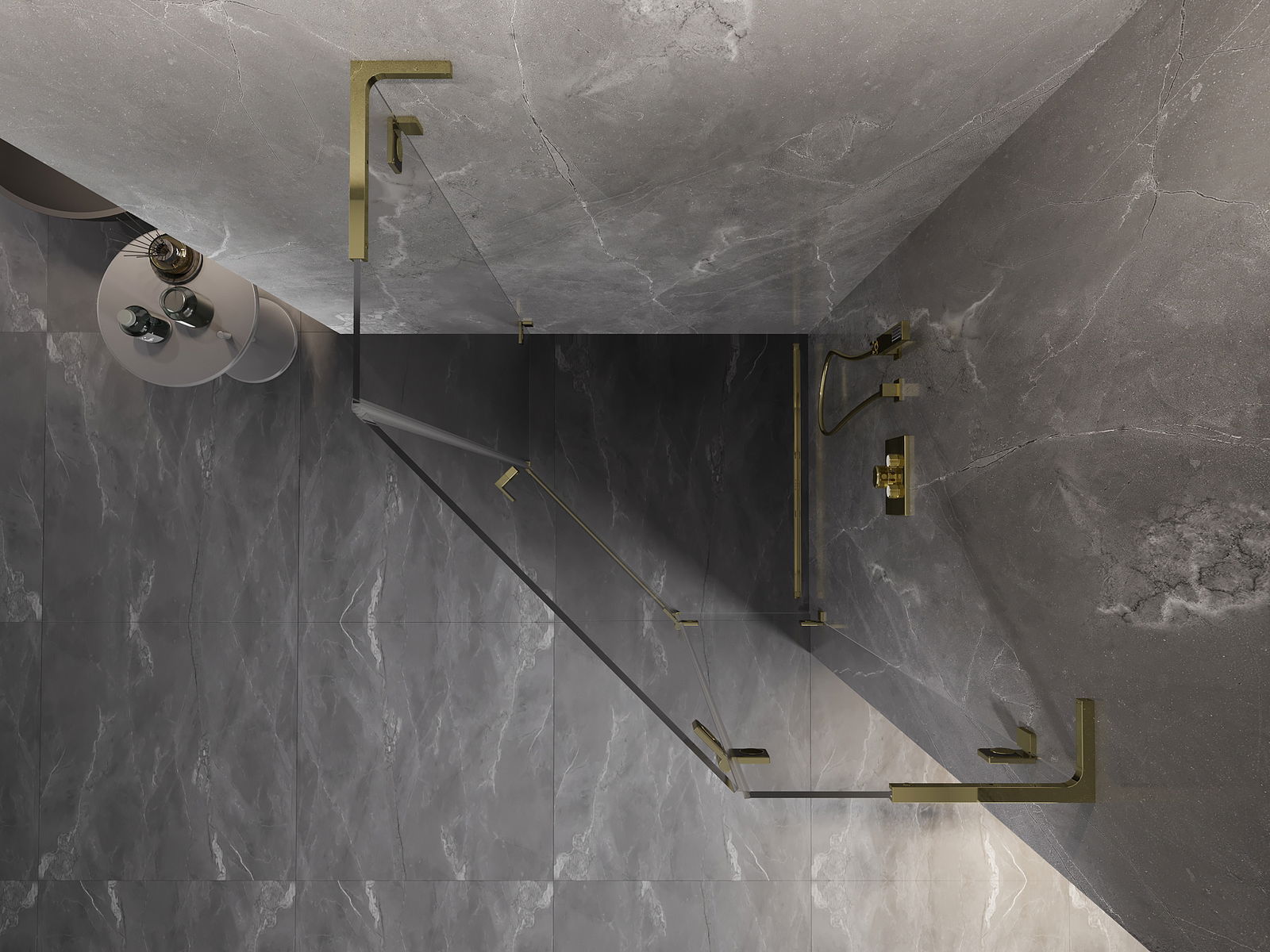 Οι σφιγκτήρες και οι μεντεσέδες είναι κατασκευασμένοι από πολύ ανθεκτικό ορείχαλκο και επιπλέον δημιουργούν μια ευθυγραμμισμένη επιφάνεια γυαλιού. Είναι μια εξαιρετική επιλογή που συνδυάζει κομψότητα, ανθεκτικότητα και σύγχρονο σχεδιασμό. Χάρη σε αυτές τις λύσεις, η ντουζιέρα κερδίζει σε αισθητική και ταυτόχρονα διευκολύνουν τη διατήρηση της καθαριότητας.