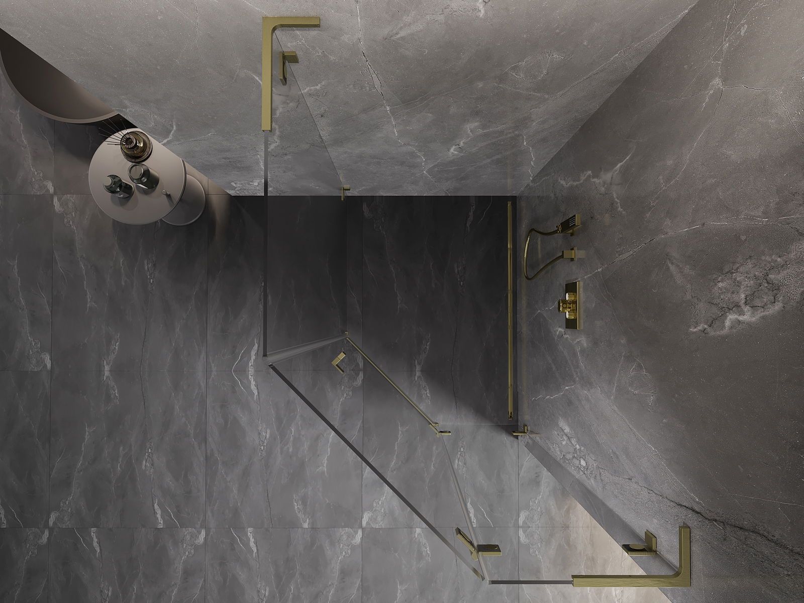 Οι σφιγκτήρες και οι μεντεσέδες είναι κατασκευασμένοι από πολύ ανθεκτικό ορείχαλκο και επιπλέον δημιουργούν μια ευθυγραμμισμένη επιφάνεια γυαλιού. Είναι μια εξαιρετική επιλογή που συνδυάζει κομψότητα, ανθεκτικότητα και σύγχρονο σχεδιασμό. Χάρη σε αυτές τις λύσεις, η ντουζιέρα κερδίζει σε αισθητική και ταυτόχρονα διευκολύνουν τη διατήρηση της καθαριότητας.