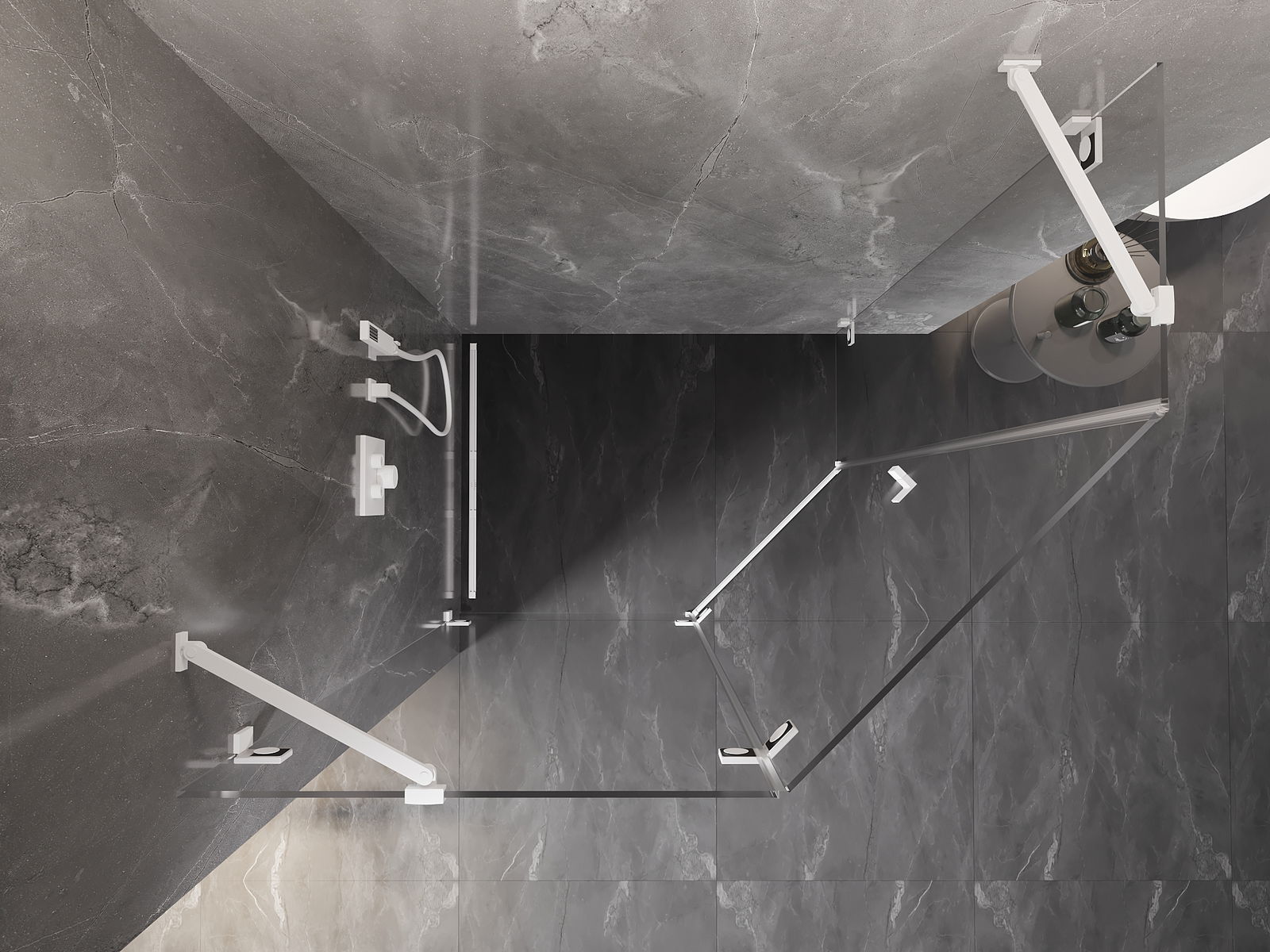 Οι σφιγκτήρες και οι μεντεσέδες είναι κατασκευασμένοι από πολύ ανθεκτικό ορείχαλκο και επιπλέον δημιουργούν μια ευθυγραμμισμένη επιφάνεια γυαλιού. Είναι μια εξαιρετική επιλογή που συνδυάζει κομψότητα, ανθεκτικότητα και σύγχρονο σχεδιασμό. Χάρη σε αυτές τις λύσεις, η ντουζιέρα κερδίζει σε αισθητική και ταυτόχρονα διευκολύνουν τη διατήρηση της καθαριότητας.