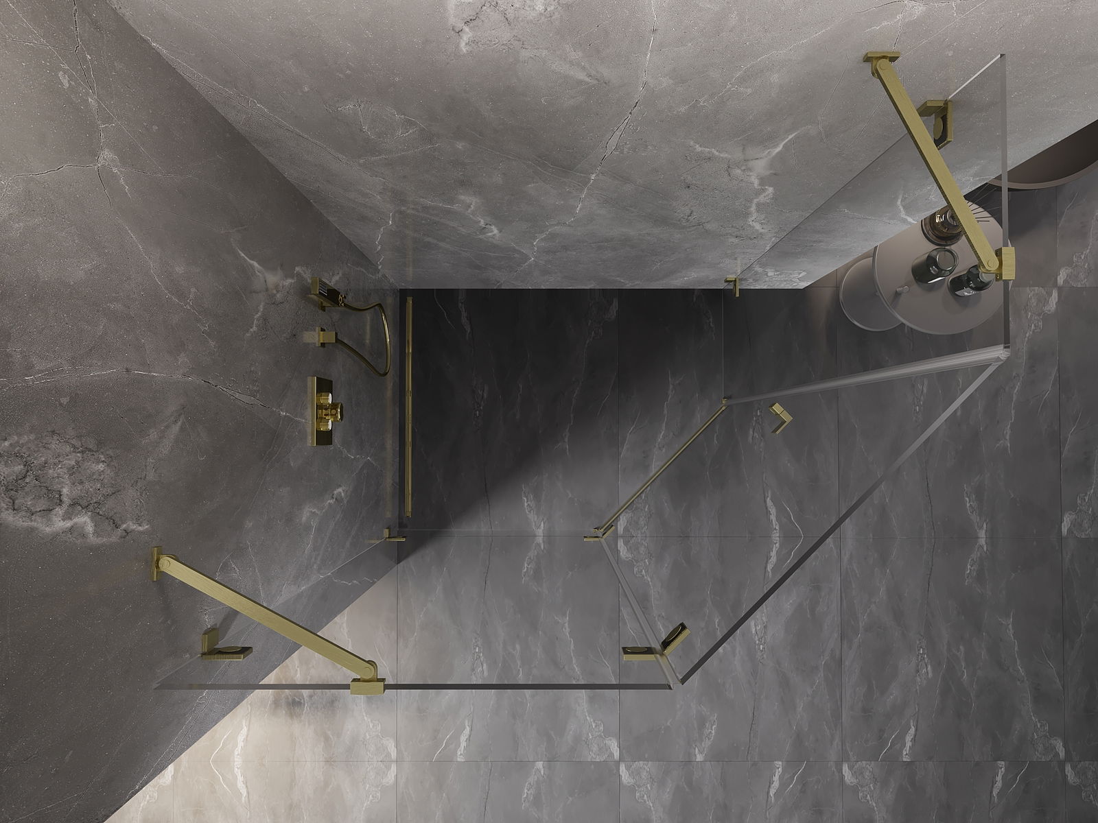 Οι σφιγκτήρες και οι μεντεσέδες είναι κατασκευασμένοι από πολύ ανθεκτικό ορείχαλκο και επιπλέον δημιουργούν μια ευθυγραμμισμένη επιφάνεια γυαλιού. Είναι μια εξαιρετική επιλογή που συνδυάζει κομψότητα, ανθεκτικότητα και σύγχρονο σχεδιασμό. Χάρη σε αυτές τις λύσεις, η ντουζιέρα κερδίζει σε αισθητική και ταυτόχρονα διευκολύνουν τη διατήρηση της καθαριότητας.
