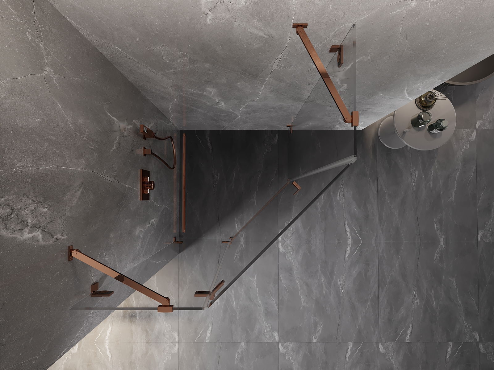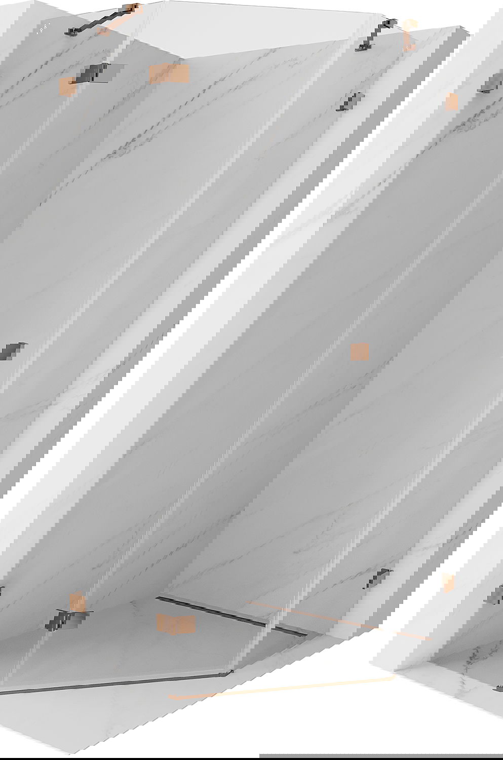 Οι σφιγκτήρες και οι μεντεσέδες είναι κατασκευασμένοι από πολύ ανθεκτικό ορείχαλκο και επιπλέον δημιουργούν μια ευθυγραμμισμένη επιφάνεια γυαλιού. Είναι μια εξαιρετική επιλογή που συνδυάζει κομψότητα, ανθεκτικότητα και σύγχρονο σχεδιασμό. Χάρη σε αυτές τις λύσεις, η ντουζιέρα κερδίζει σε αισθητική και ταυτόχρονα διευκολύνουν τη διατήρηση της καθαριότητας.