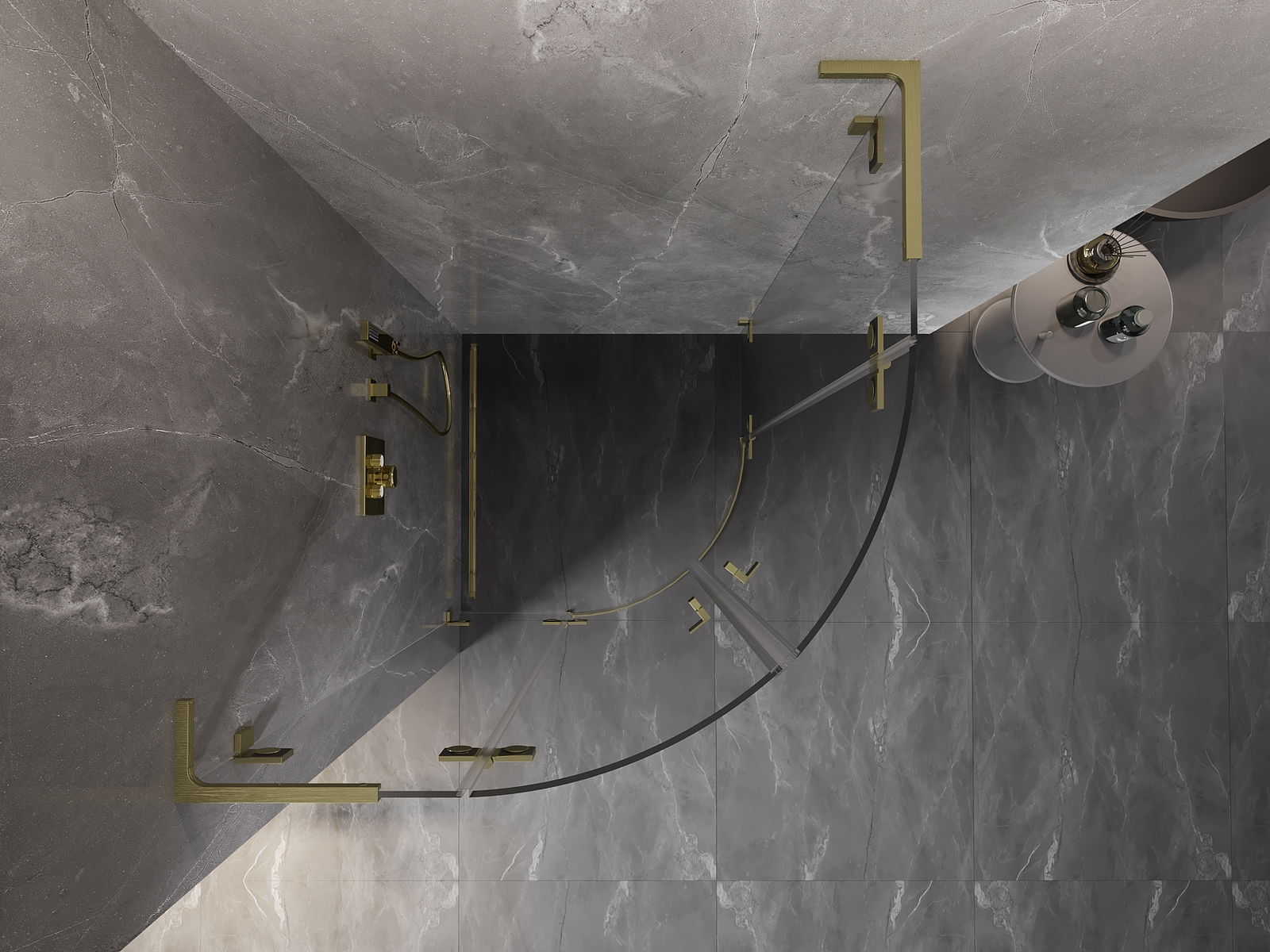 Οι σφιγκτήρες και οι μεντεσέδες είναι κατασκευασμένοι από πολύ ανθεκτικό ορείχαλκο και επιπλέον δημιουργούν μια ευθυγραμμισμένη επιφάνεια γυαλιού. Είναι μια εξαιρετική επιλογή που συνδυάζει κομψότητα, ανθεκτικότητα και σύγχρονο σχεδιασμό. Χάρη σε αυτές τις λύσεις, η ντουζιέρα κερδίζει σε αισθητική και ταυτόχρονα διευκολύνουν τη διατήρηση της καθαριότητας.