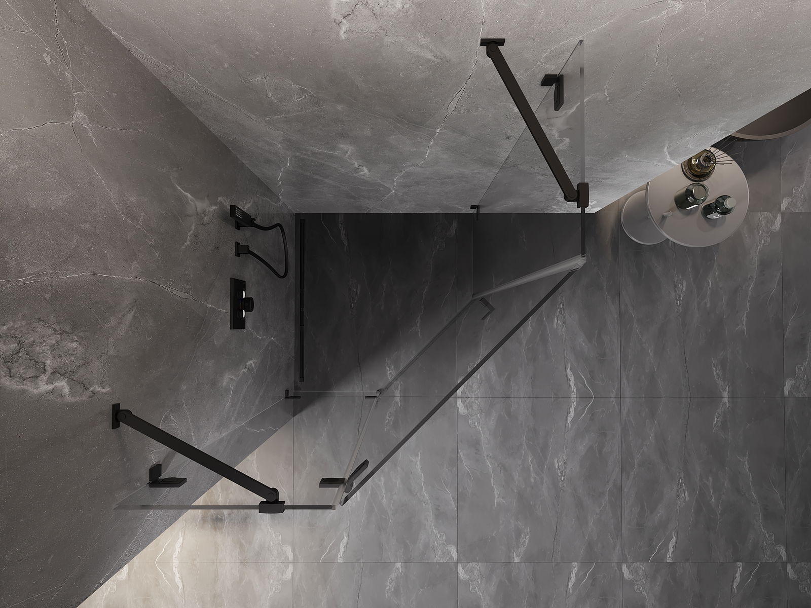 Οι σφιγκτήρες και οι μεντεσέδες είναι κατασκευασμένοι από πολύ ανθεκτικό ορείχαλκο και επιπλέον δημιουργούν μια ευθυγραμμισμένη επιφάνεια γυαλιού. Είναι μια εξαιρετική επιλογή που συνδυάζει κομψότητα, ανθεκτικότητα και σύγχρονο σχεδιασμό. Χάρη σε αυτές τις λύσεις, η ντουζιέρα κερδίζει σε αισθητική και ταυτόχρονα διευκολύνουν τη διατήρηση της καθαριότητας.