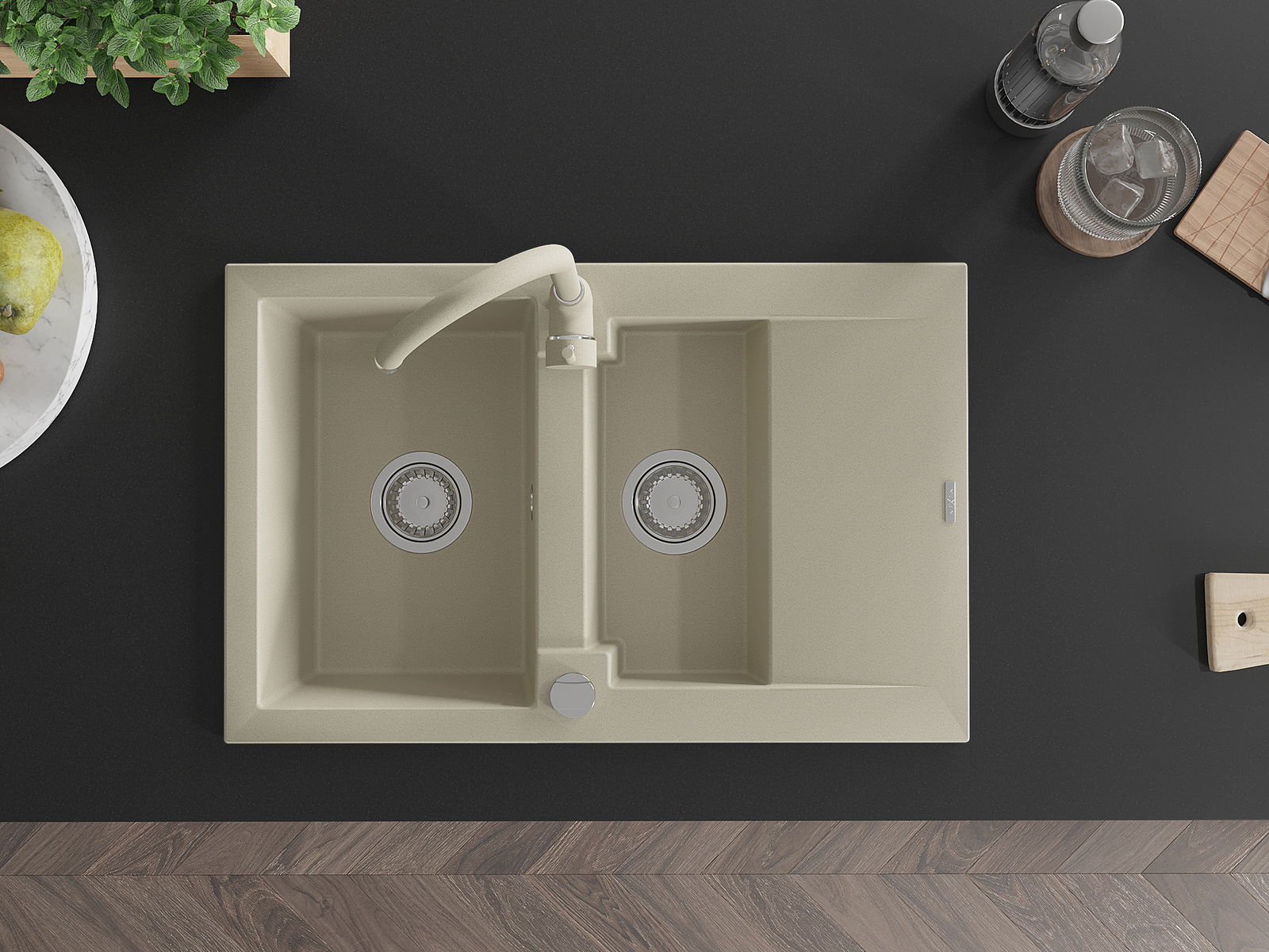 Ο νεροχύτης κατασκευάστηκε από υψηλής ποιότητας γρανίτη. Αποτελεί μια κομψή, και κυρίως πρακτική προσθήκη για κάθε κουζίνα, ανεξάρτητα από το στυλ της. Η υψηλή ποιότητα και η αντοχή του γρανίτη εξασφαλίζουν πολυετή χρήση.