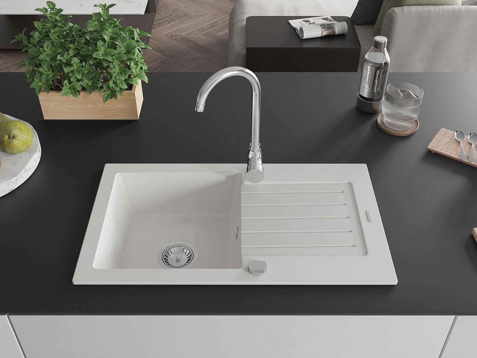 Ο νεροχύτης κατασκευάστηκε από υψηλής ποιότητας γρανίτη. Αποτελεί μια κομψή, και κυρίως πρακτική προσθήκη για κάθε κουζίνα, ανεξάρτητα από το στυλ της. Η υψηλή ποιότητα και η αντοχή του γρανίτη εξασφαλίζουν πολυετή χρήση.