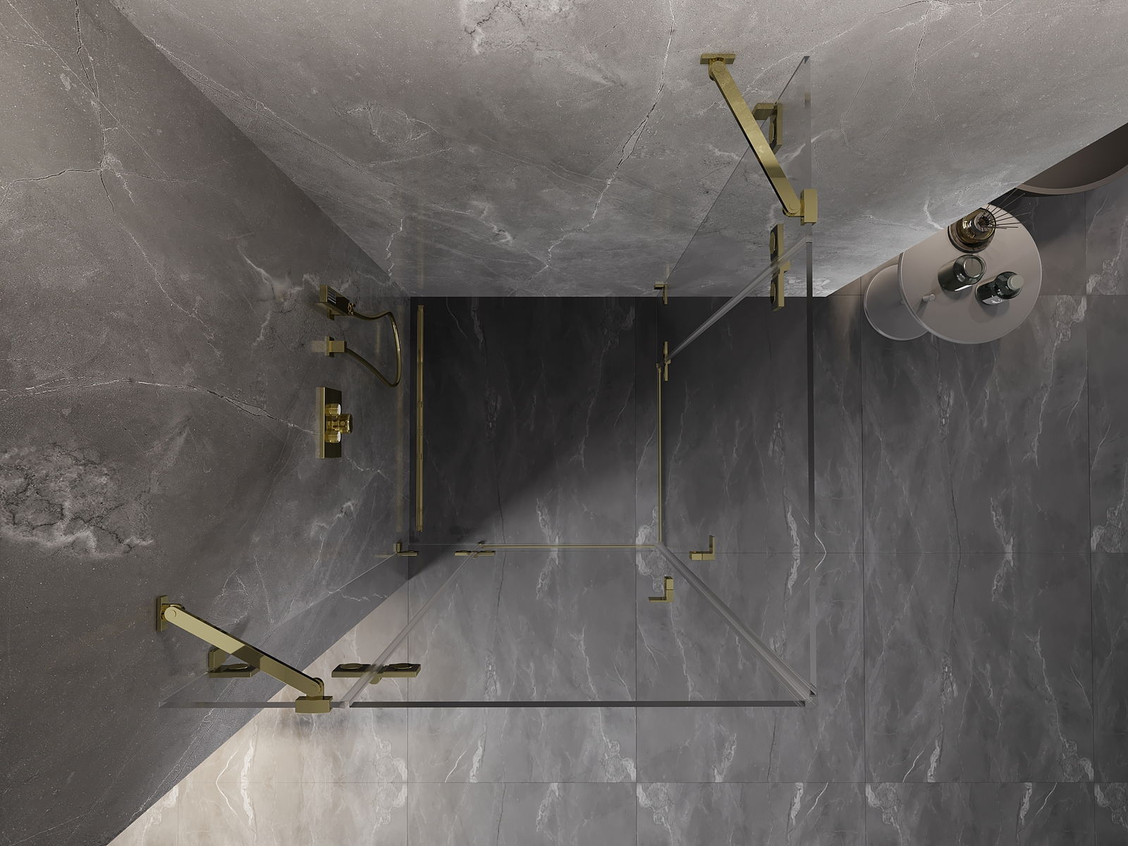 Οι σφιγκτήρες και οι μεντεσέδες είναι κατασκευασμένοι από πολύ ανθεκτικό ορείχαλκο και επιπλέον δημιουργούν μια ευθυγραμμισμένη επιφάνεια γυαλιού. Είναι μια εξαιρετική επιλογή που συνδυάζει κομψότητα, ανθεκτικότητα και σύγχρονο σχεδιασμό. Χάρη σε αυτές τις λύσεις, η ντουζιέρα κερδίζει σε αισθητική και ταυτόχρονα διευκολύνουν τη διατήρηση της καθαριότητας.