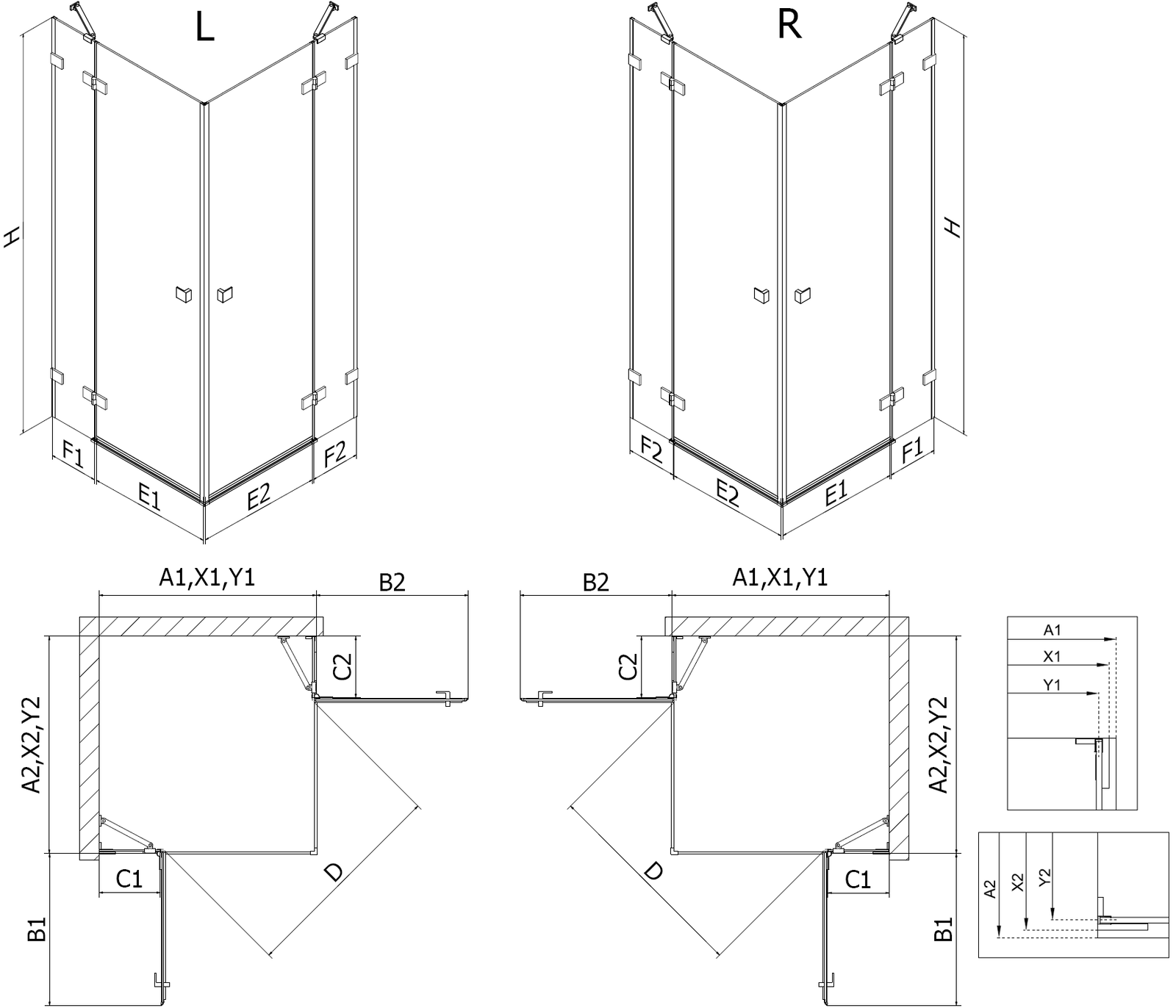 Οι πόρτες ανοιγόμενες επιτρέπουν τη μέγιστη ελευθερία κατά τη χρήση. Διαθέτουν ισχυρούς μεντεσέδες κατασκευασμένους από ανθεκτικό υλικό, που δεν δημιουργούν δυσκολίες στη διατήρηση της καθαριότητας και επιτρέπουν εύκολη πρόσβαση στο εσωτερικό της καμπίνας.