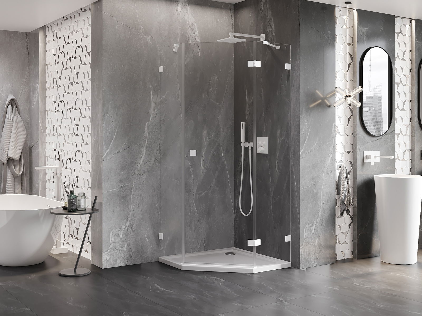 Mexen Lunar δεξιά πενταγωνική καμπίνα ντους 80 x 80 εκ., διάφανη, λευκή