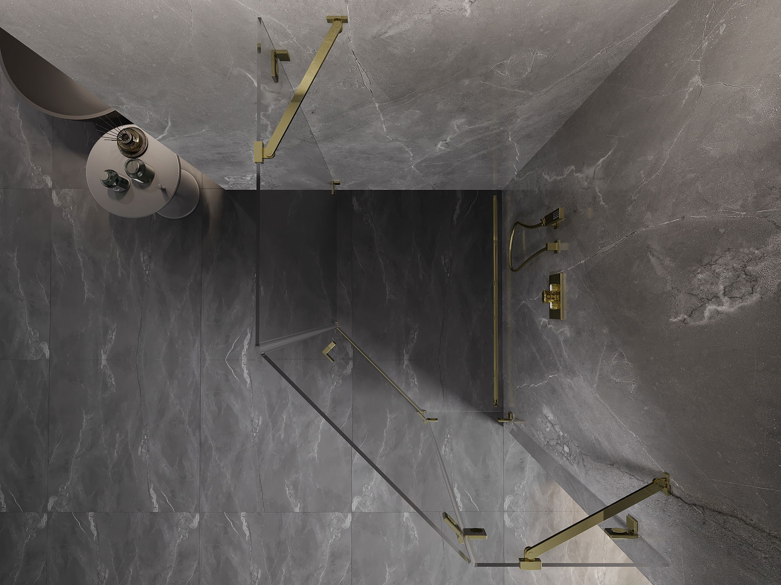Mexen Lunar Πεντάγωνο ντους δεξιάς πόρτας 90 x 100 cm, διαφανές, χρυσό