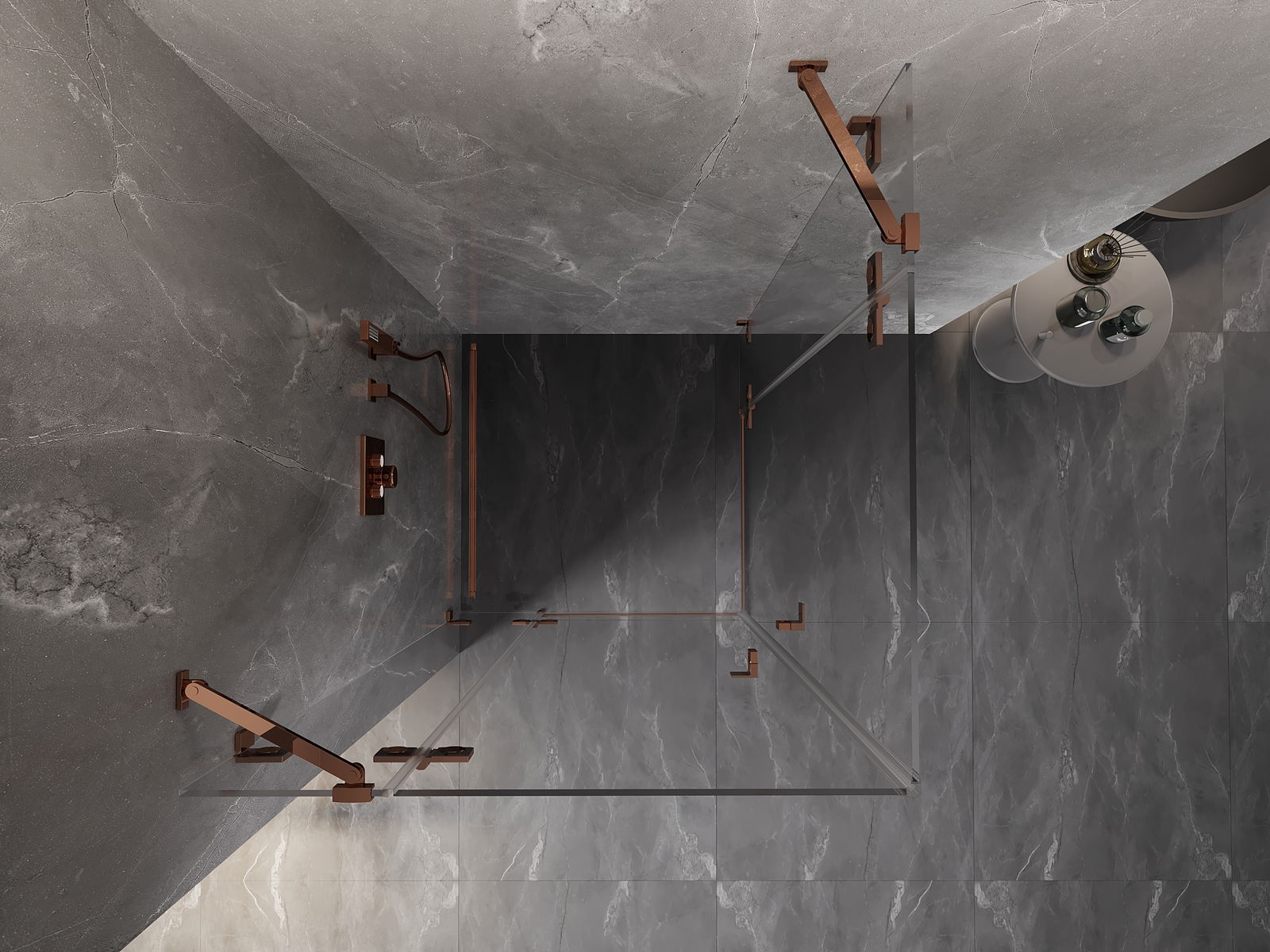 Οι σφιγκτήρες και οι μεντεσέδες είναι κατασκευασμένοι από πολύ ανθεκτικό ορείχαλκο και επιπλέον δημιουργούν μια ευθυγραμμισμένη επιφάνεια γυαλιού. Είναι μια εξαιρετική επιλογή που συνδυάζει κομψότητα, ανθεκτικότητα και σύγχρονο σχεδιασμό. Χάρη σε αυτές τις λύσεις, η ντουζιέρα κερδίζει σε αισθητική και ταυτόχρονα διευκολύνουν τη διατήρηση της καθαριότητας.