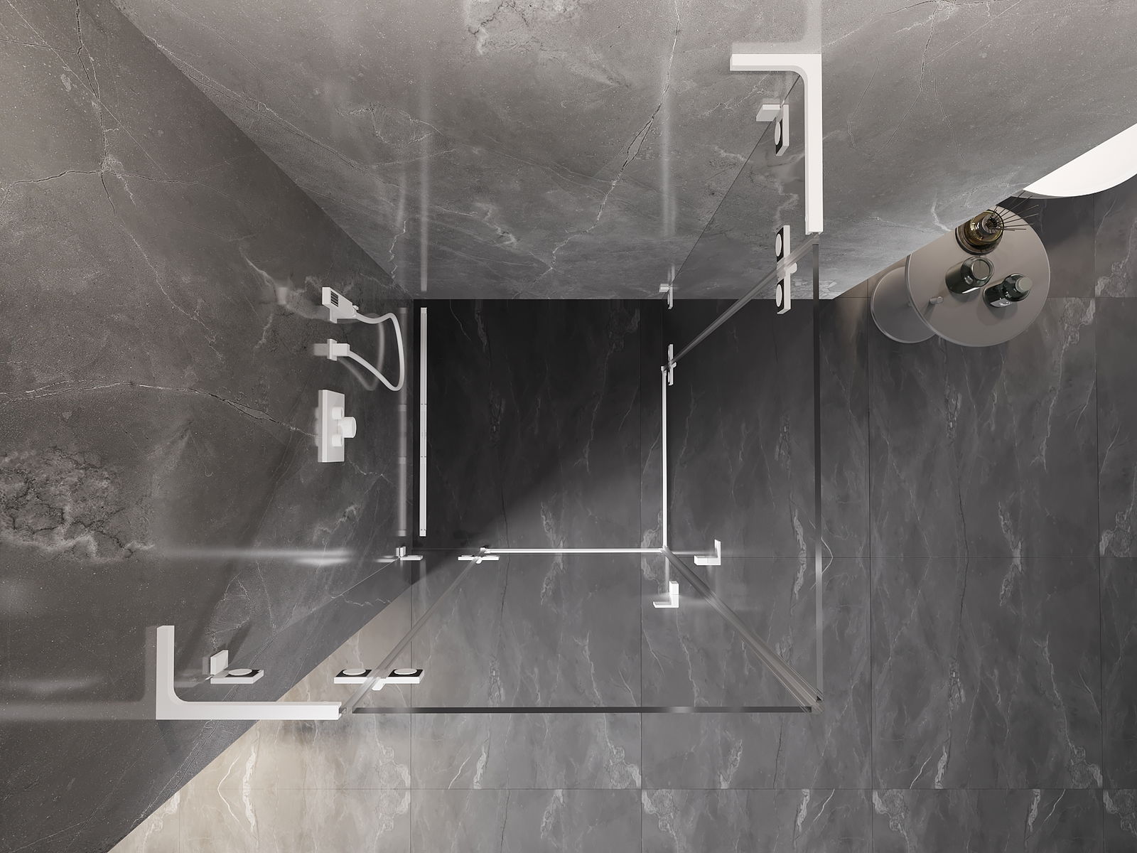 Οι σφιγκτήρες και οι μεντεσέδες είναι κατασκευασμένοι από πολύ ανθεκτικό ορείχαλκο και επιπλέον δημιουργούν μια ευθυγραμμισμένη επιφάνεια γυαλιού. Είναι μια εξαιρετική επιλογή που συνδυάζει κομψότητα, ανθεκτικότητα και σύγχρονο σχεδιασμό. Χάρη σε αυτές τις λύσεις, η ντουζιέρα κερδίζει σε αισθητική και ταυτόχρονα διευκολύνουν τη διατήρηση της καθαριότητας.