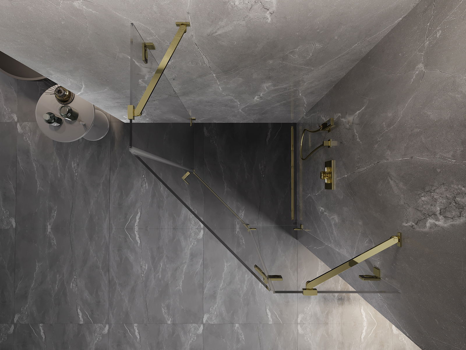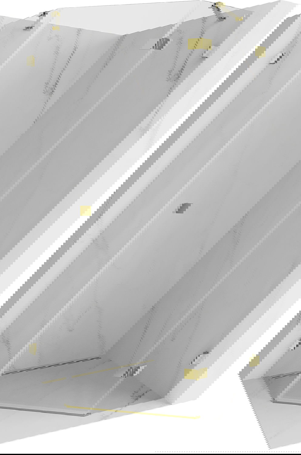 Οι σφιγκτήρες και οι μεντεσέδες είναι κατασκευασμένοι από πολύ ανθεκτικό ορείχαλκο και επιπλέον δημιουργούν μια ευθυγραμμισμένη επιφάνεια γυαλιού. Είναι μια εξαιρετική επιλογή που συνδυάζει κομψότητα, ανθεκτικότητα και σύγχρονο σχεδιασμό. Χάρη σε αυτές τις λύσεις, η ντουζιέρα κερδίζει σε αισθητική και ταυτόχρονα διευκολύνουν τη διατήρηση της καθαριότητας.