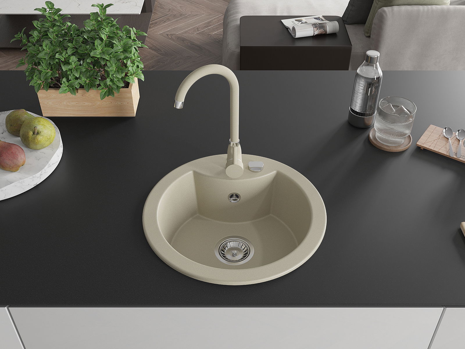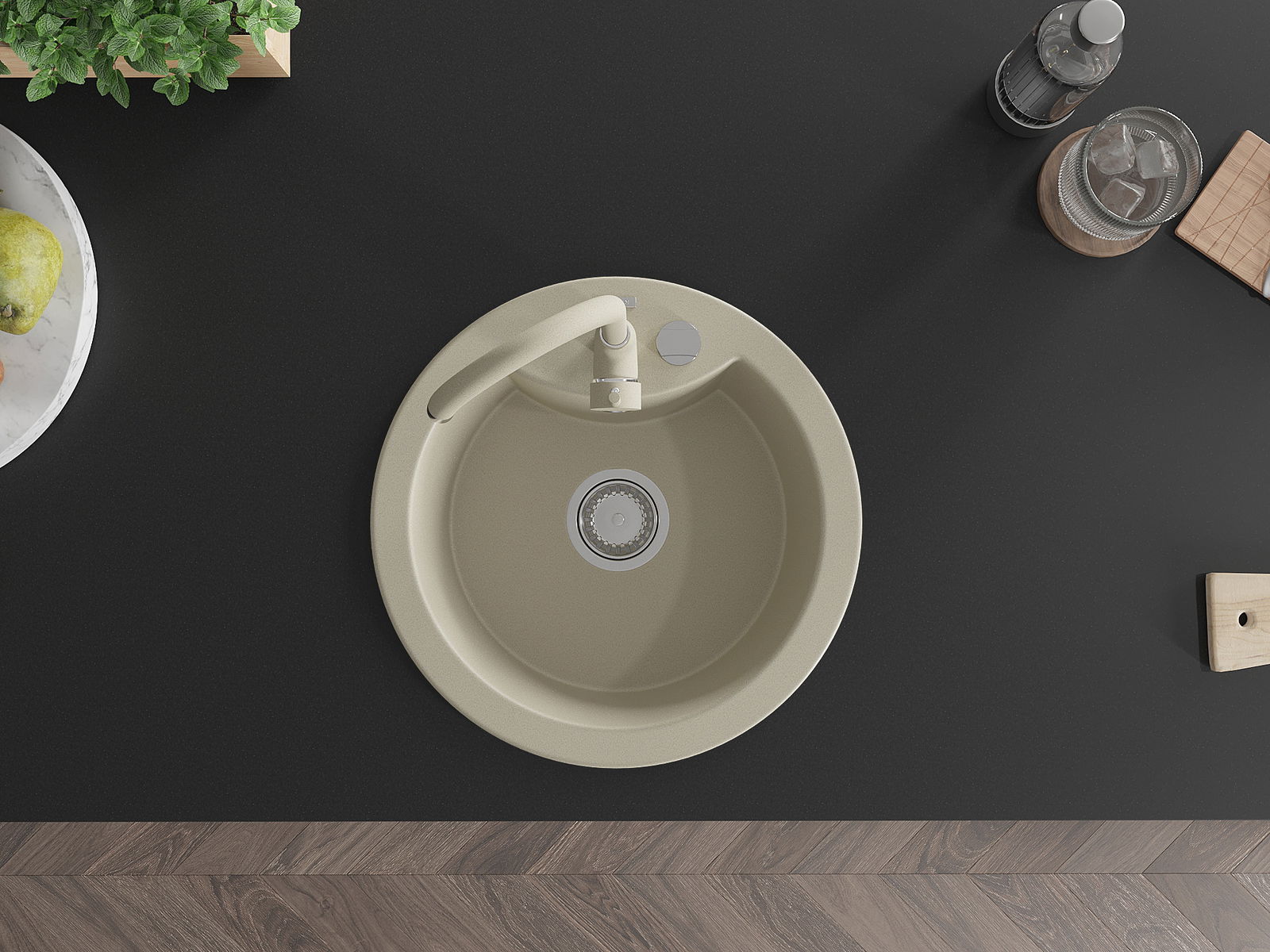 Ο νεροχύτης κατασκευάστηκε από υψηλής ποιότητας γρανίτη. Αποτελεί μια κομψή, και κυρίως πρακτική προσθήκη για κάθε κουζίνα, ανεξάρτητα από το στυλ της. Η υψηλή ποιότητα και η αντοχή του γρανίτη εξασφαλίζουν πολυετή χρήση.