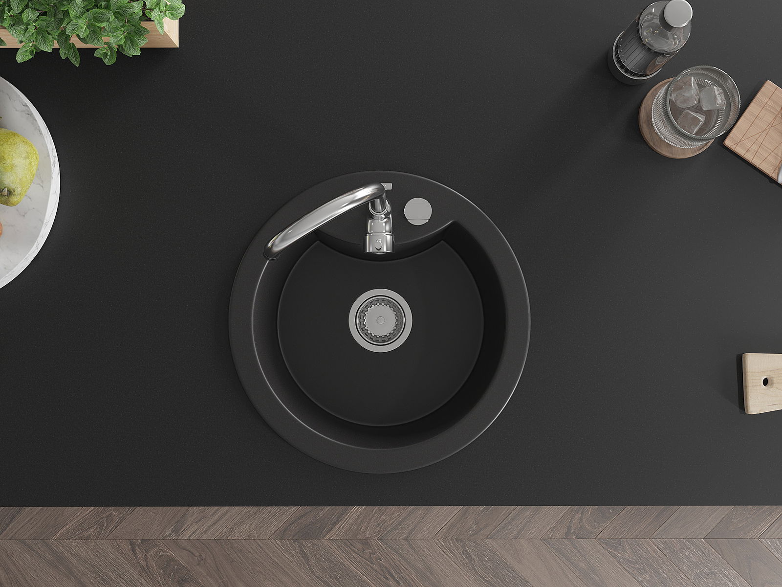 Ο νεροχύτης κατασκευάστηκε από υψηλής ποιότητας γρανίτη. Αποτελεί μια κομψή, και κυρίως πρακτική προσθήκη για κάθε κουζίνα, ανεξάρτητα από το στυλ της. Η υψηλή ποιότητα και η αντοχή του γρανίτη εξασφαλίζουν πολυετή χρήση.